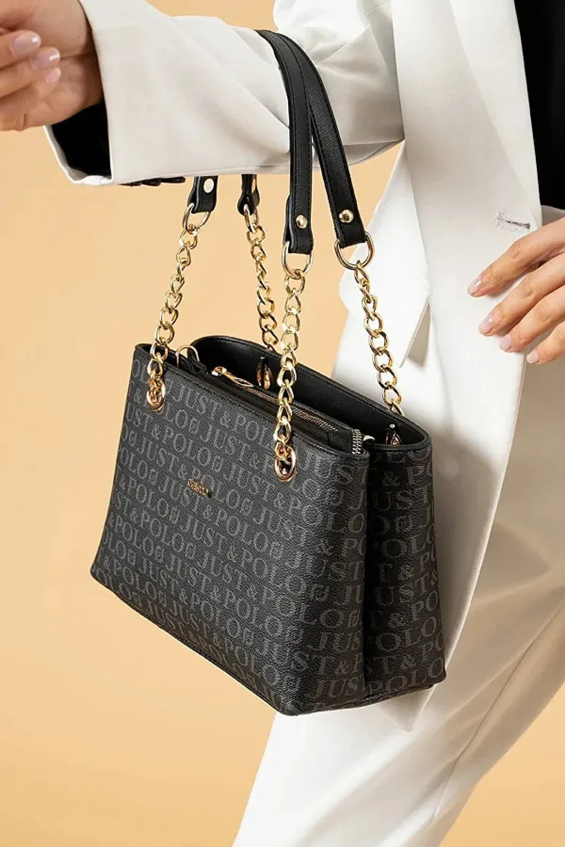 Just Polo حقيبة كتف نسائية بنية طويلة بحزام كتف وحقيبة يد ومحفظة