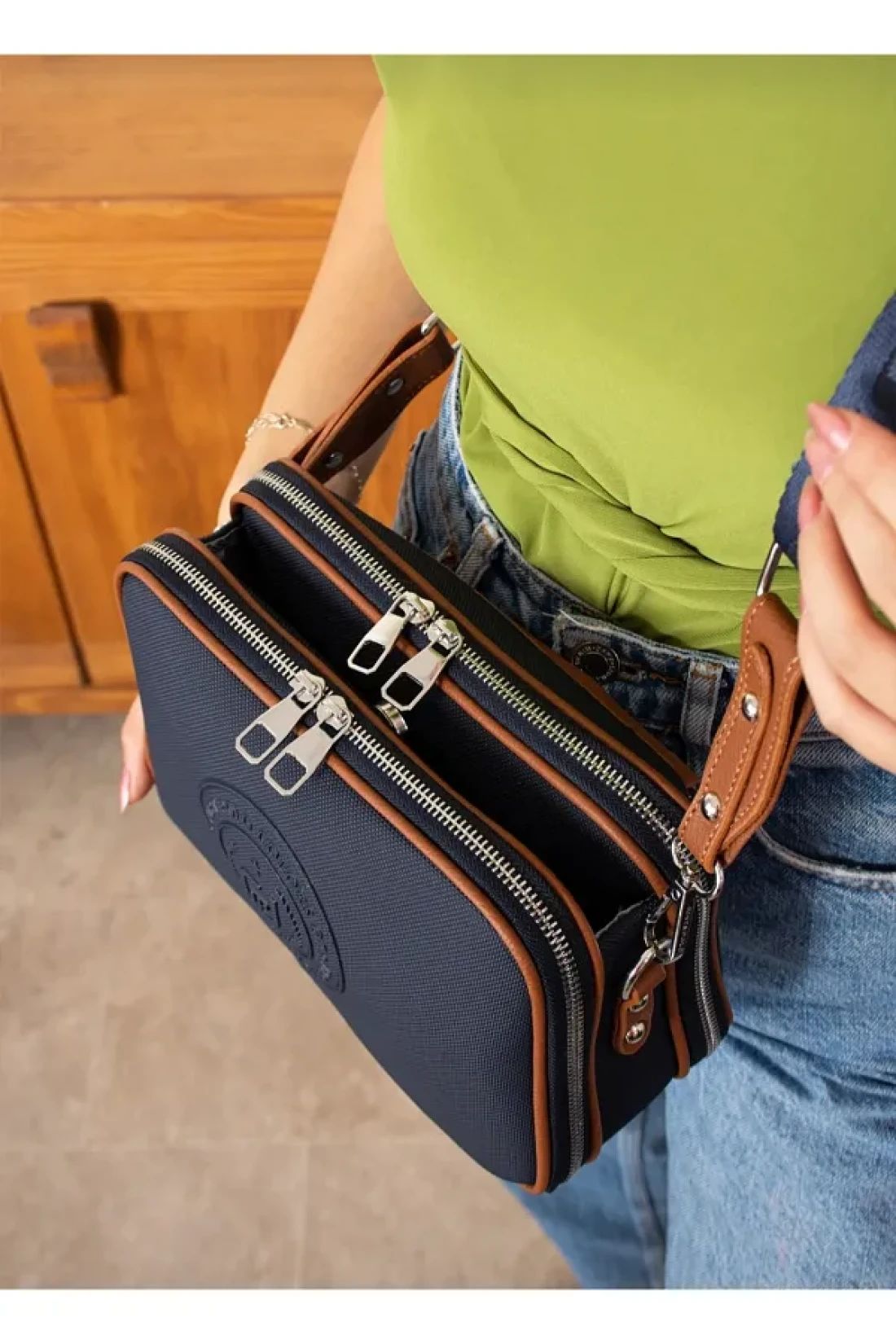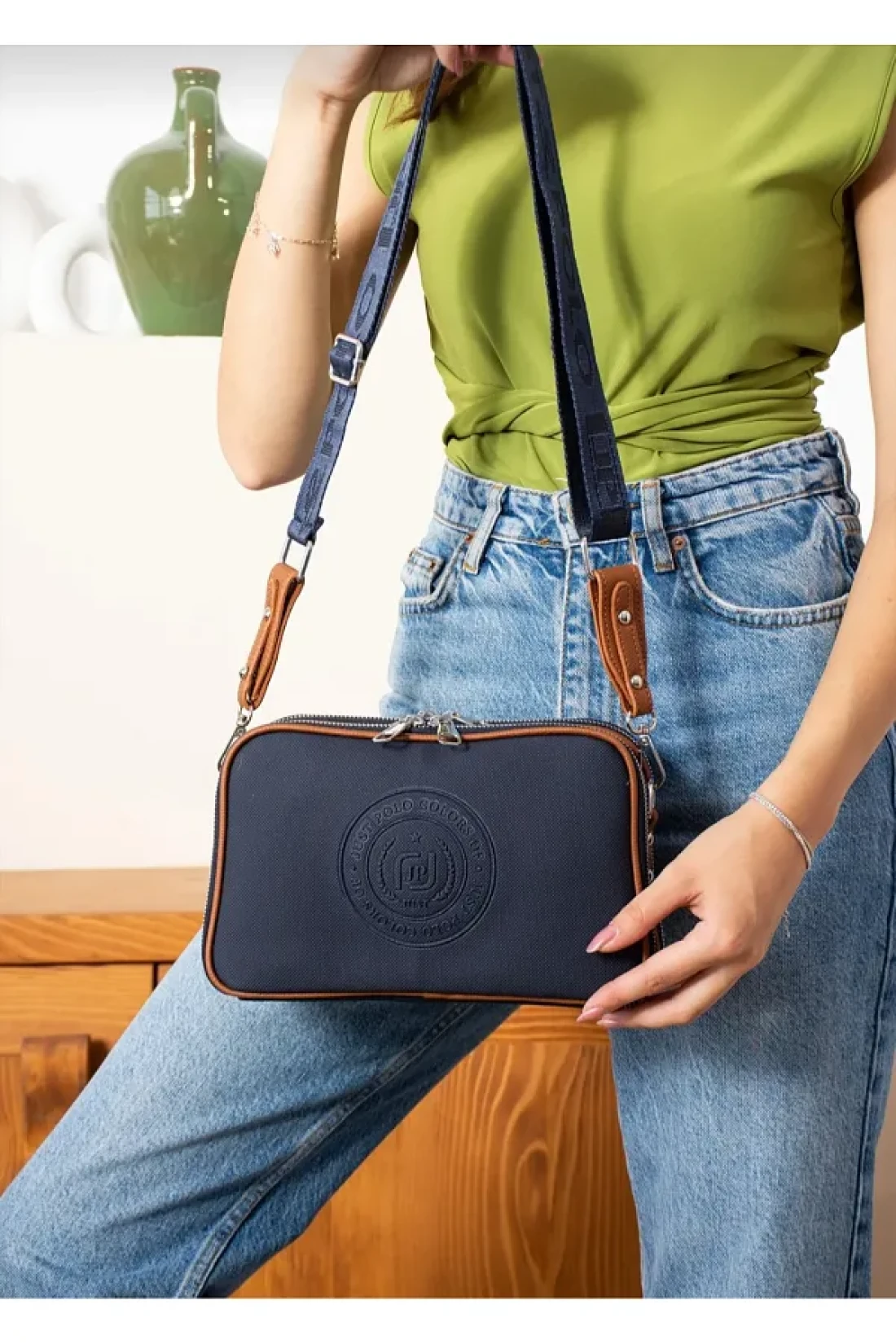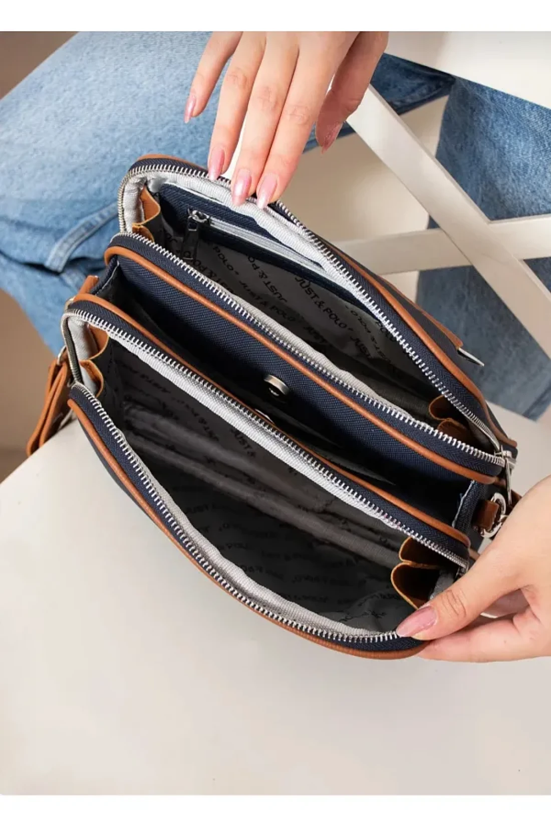 حقيبة كتف وحقيبة كروس مبطنة أصلية من Just Polo مكونة من 5 أقسام؛ الحجم: 27x17 سم