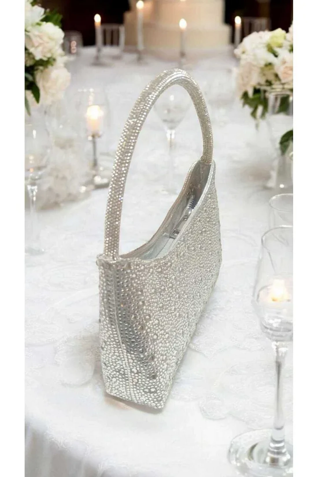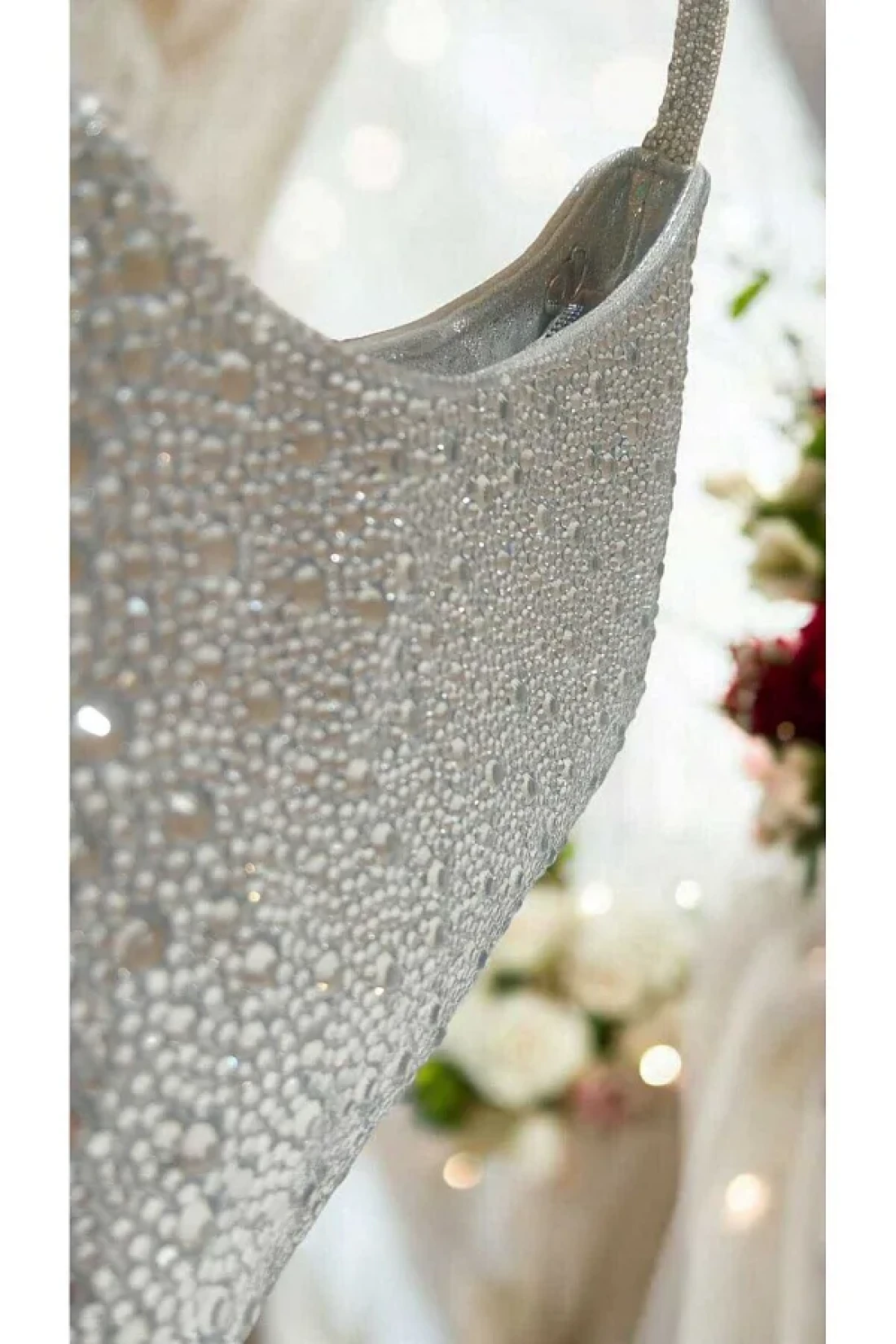 Butik حقيبة كتف فستان سهرة فضي حجري مستورد بثلاثة مقاسات من Beyabags