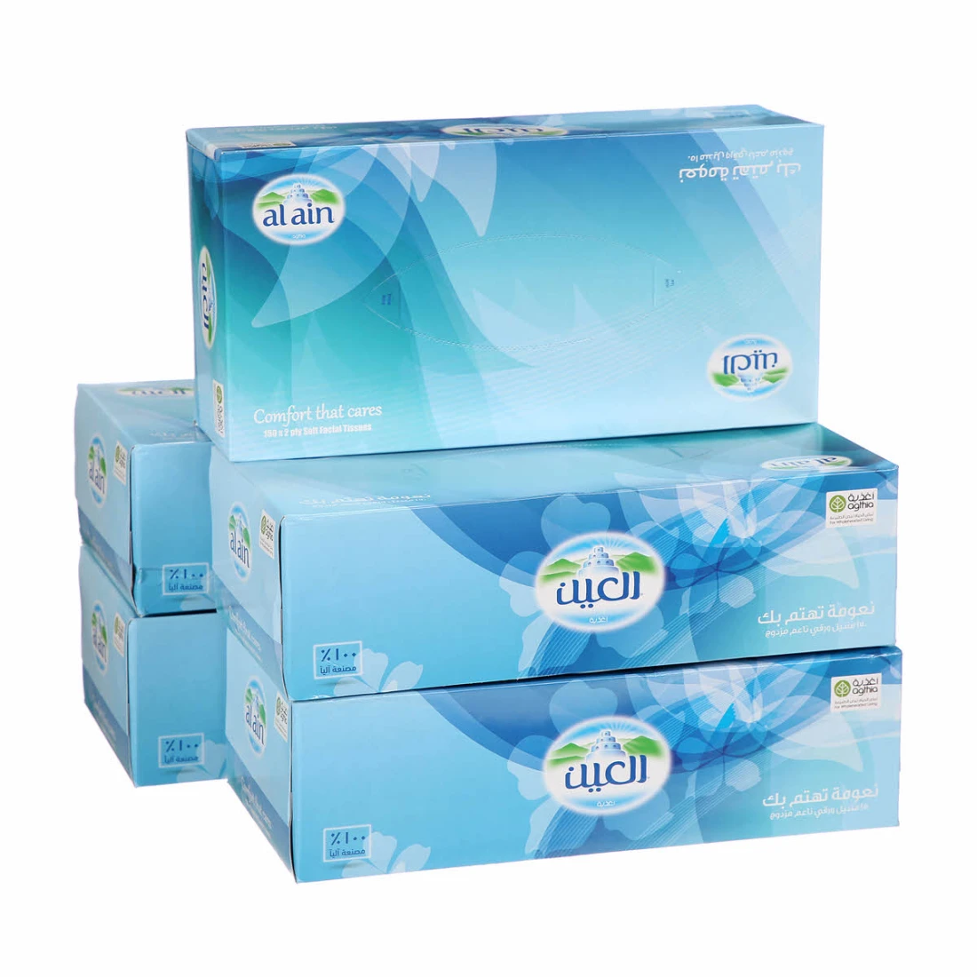 مزارع العين مناديل 5 علب مناديل للوجه 150 × 2 طبقة