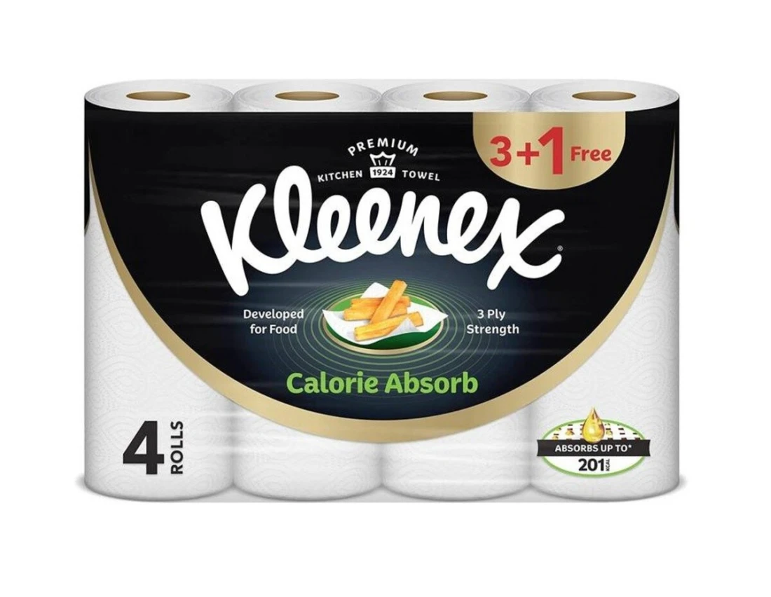 كلينيكس فيفا - مناديل مطبخ تمتص السعرات الحرارية، أبيض، 55 ورقة، 4 رول