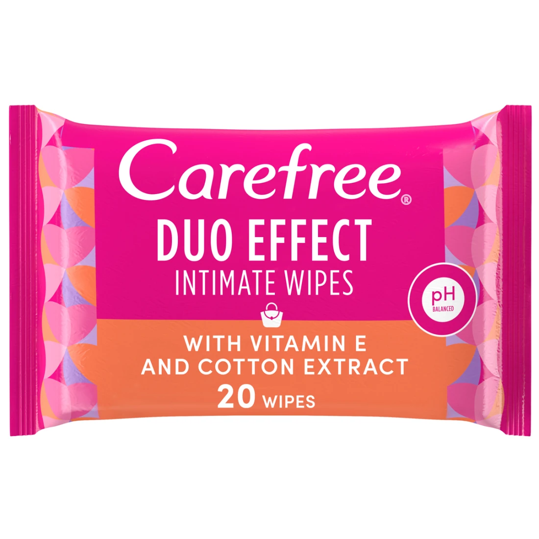 كير فري مناديل اليومية الحميمة ذات تأثير مزدوج مع فتامين إي وملمس القطن عبوة من 20 منديل مبللة
