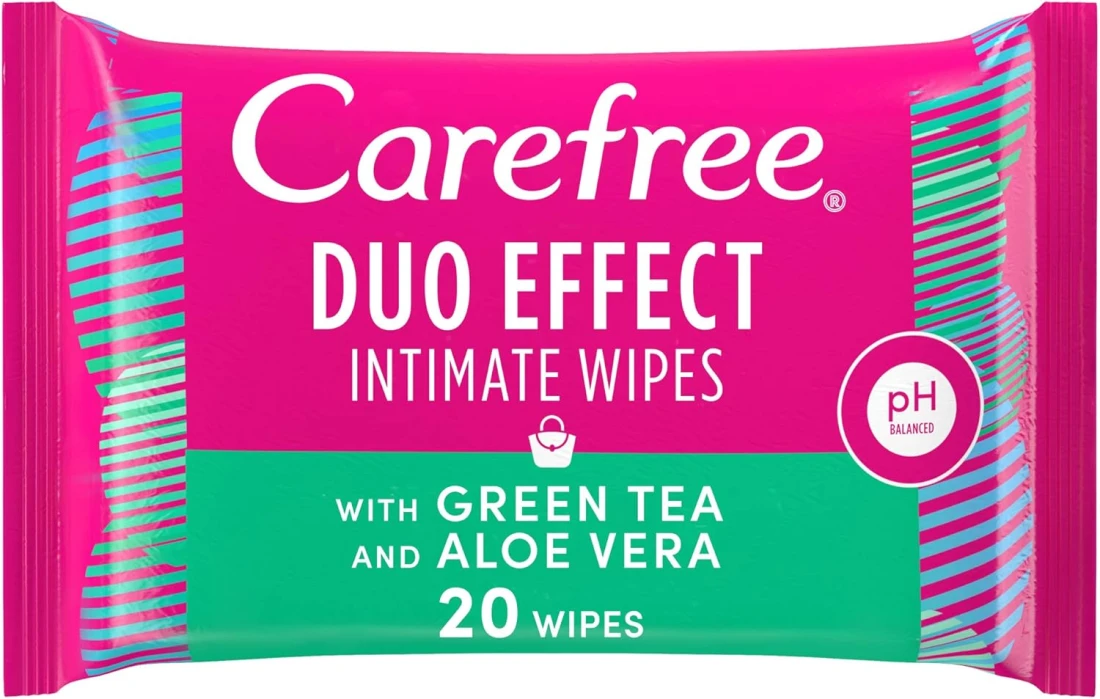 مناديل مبللة للمنطقة الحساسة للاستخدام اليومي من كيرفري، بتاثير مزدوج بالشاي الاخضر وخلاصة الصبار، عبوة من 20 منديل
