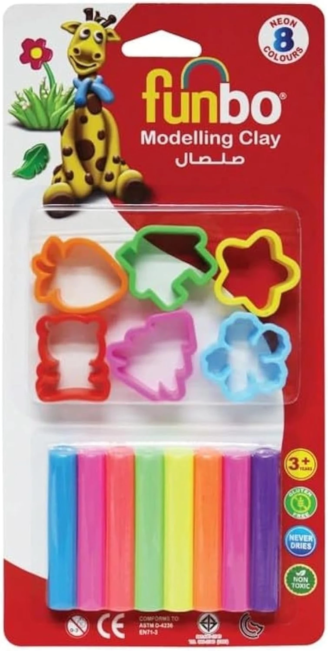 فونبو مجموعة صلصال تشكيل 8 الوان نيون مع 6 قوالب، 100 غرام