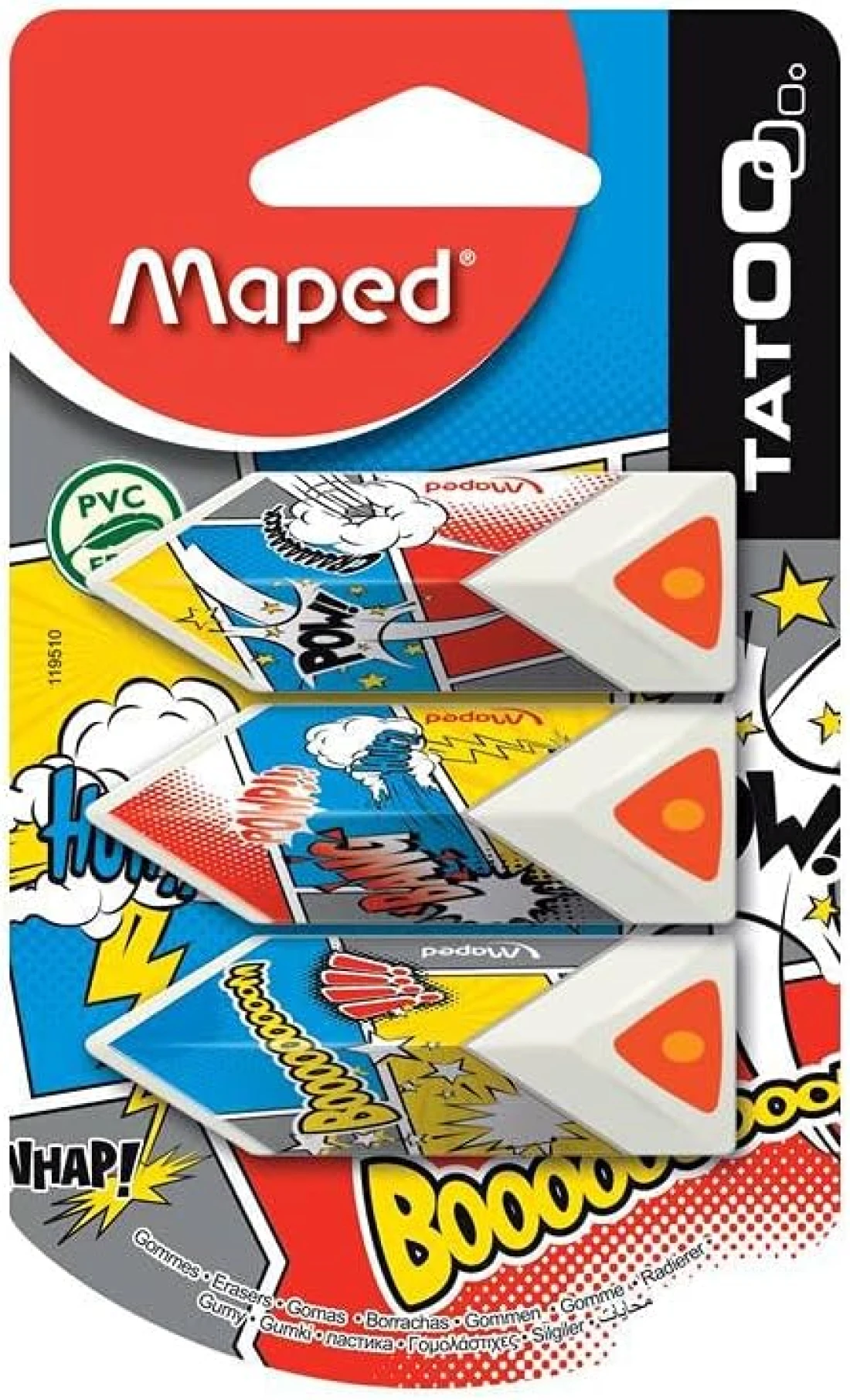 استيكة هرمية الشكل هيليكس يو اس ايه من مابد، ألوان متنوعة، عبوة من 3 قطع (119510ST)