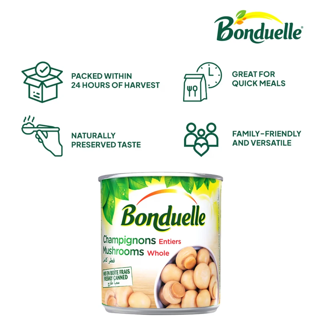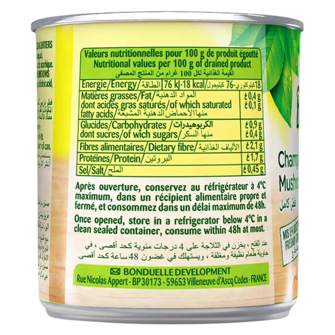 فطر بونديل الكامل يُضفي نكهة ترابية شهية تُضفي نكهة مميزة على أطباقك. بفضل محتواه المنخفض من الدهون، يُضفي هذا الفطر لمسة صحية على وجباتك دون إضافة سعرات حرارية غير ضرورية. تحتوي كل عبوة على 390 غرامًا من الفطر الكامل، مما يجعله خيارًا عمليًا للطهي أو إضافته إلى السلطات والأطباق المقلية. كما تشتهر بونديل بجودتها العالية، مما يضمن لك الحصول على فطر طازج ولذيذ في كل عبوة.