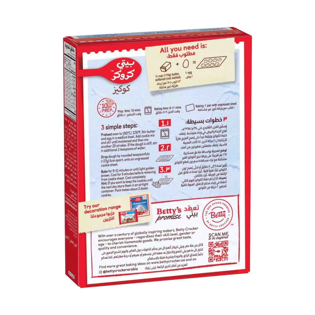 مزيج بيتي كروكر لرقائق الشوكولاتة هو مزيج عملي وسهل الاستخدام، يُمكّنك من تحضير كعكات لذيذة برقائق الشوكولاتة بسرعة في المنزل. تحتوي كل علبة على 496 غرامًا من المزيج، أي ما يكفي لتحضير حوالي 24 قطعة. يحتوي المزيج على جميع المكونات الجافة اللازمة، بما في ذلك رقائق الشوكولاتة، لذا كل ما عليكِ إضافته هو الزبدة والبيض. تُصبح الكوكيز طرية وطرية بنكهة الشوكولاتة الغنية، مما يجعلها مُتعة مثالية لأي مناسبة. سواء كنتِ تُحضّرينها لمناسبة خاصة أو ترغبين في حلوى منزلية الصنع، فإن مزيج بيتي كروكر لرقائق الشوكولاتة هو طريقة سهلة لإشباع رغبتكِ في الحلويات.