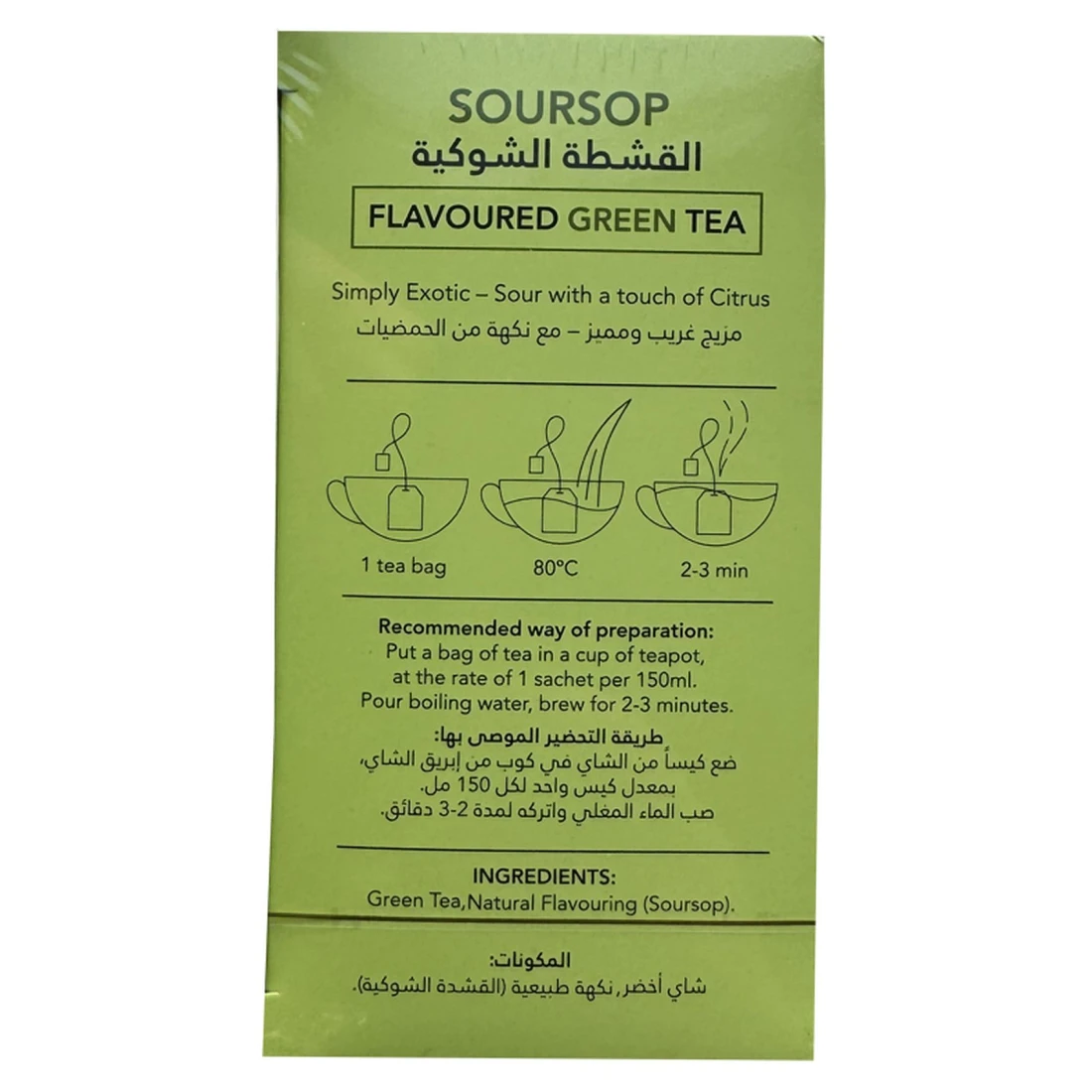 ingredients : الشاي الأخضر بنكهة طبيعية (القشطة الحامضية)