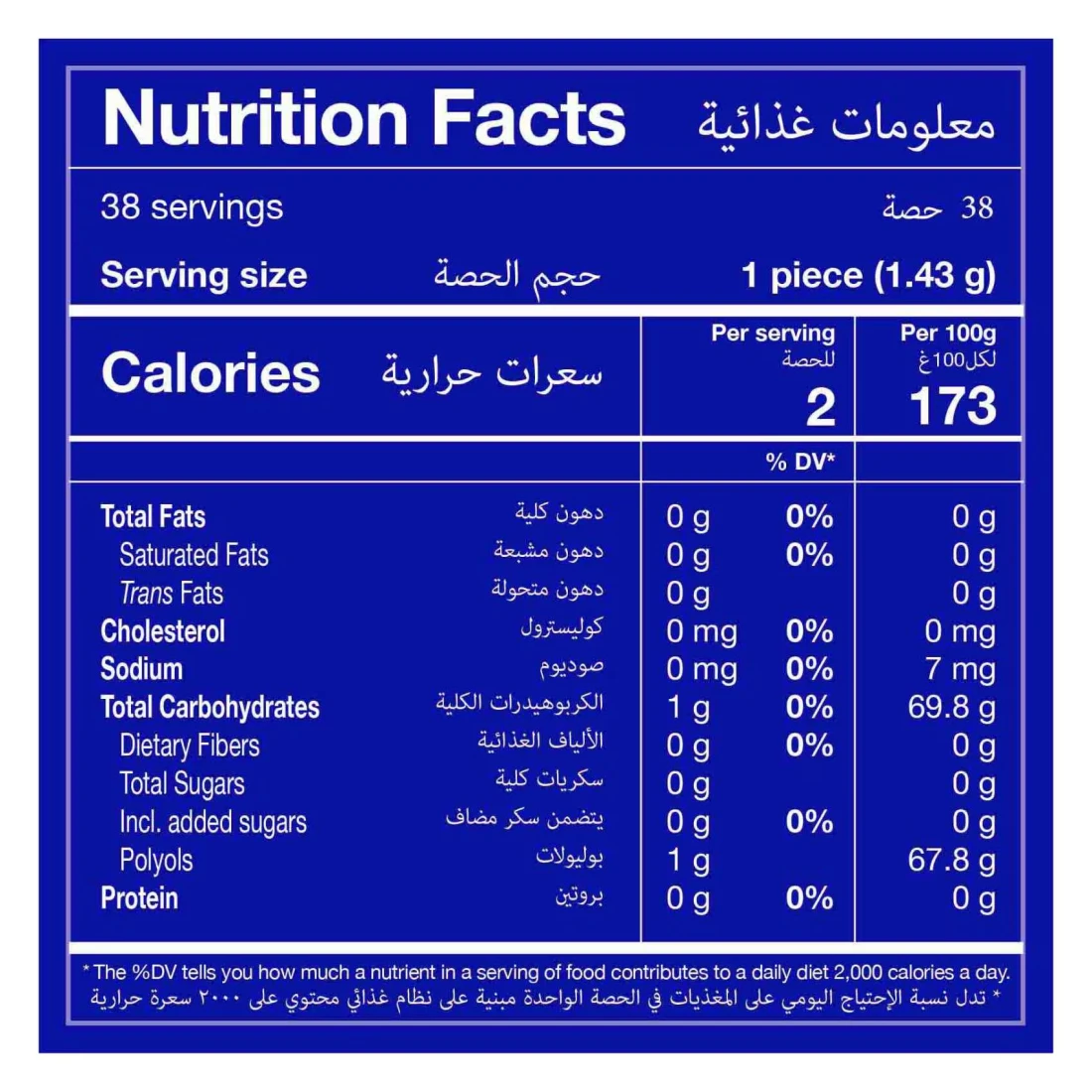 - هذه العلكة خالية من السكر، مما يجعلها خياراً صحياً لعشاق العلكة