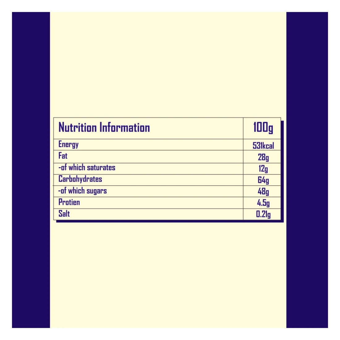 ingredients : سكر دهن النخيل دقيق القمح، مسحوق مصل اللبن (حليب)، مسحوق الحليب منزوع الدسم، اللاكتوز (حليب)، نكهة الفانيليا الطبيعية مع نكهات طبيعية أخرى ملح