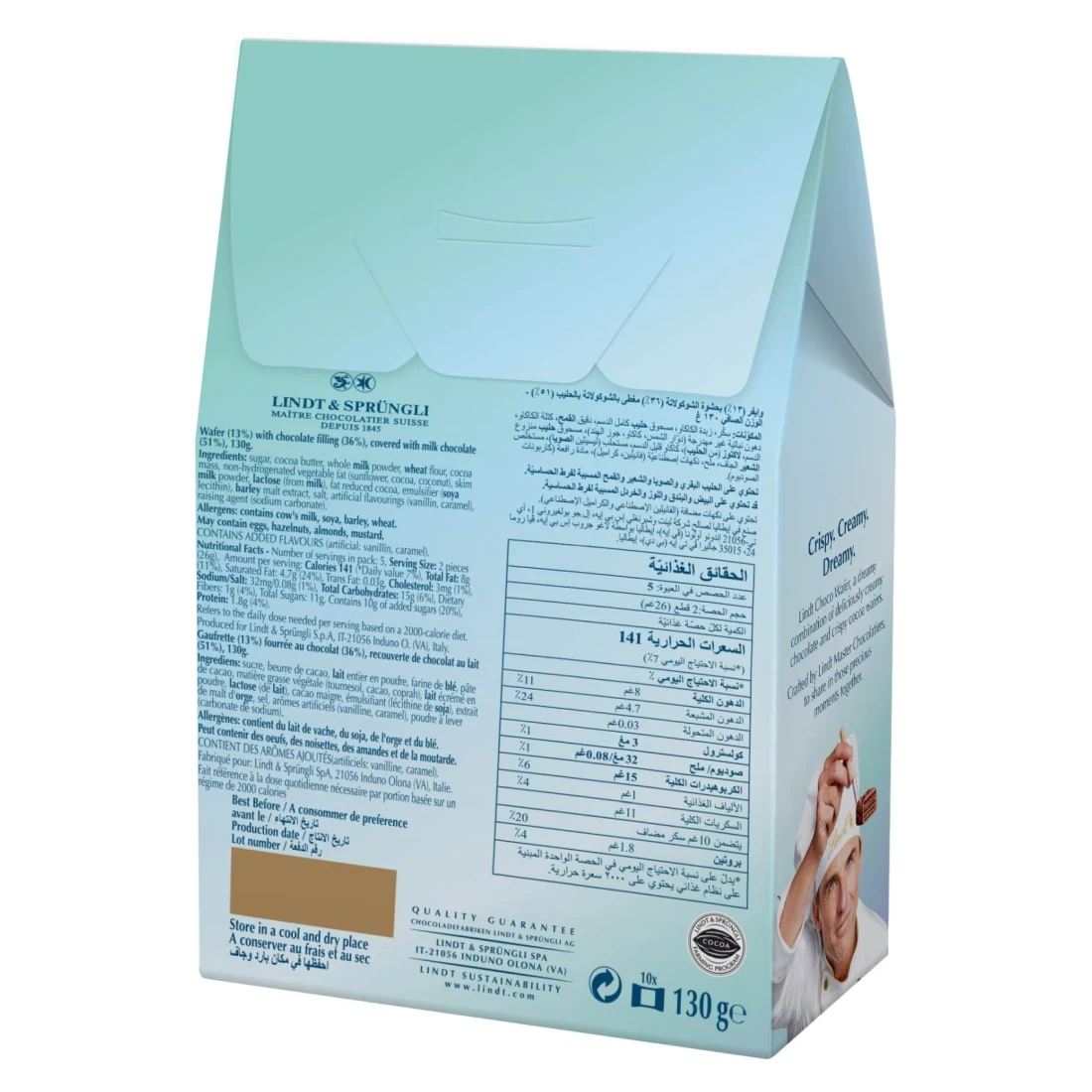 ليندت ويفر بحشوة الشوكولاته ومغطى بشوكولاته الحليب، 130 غرام