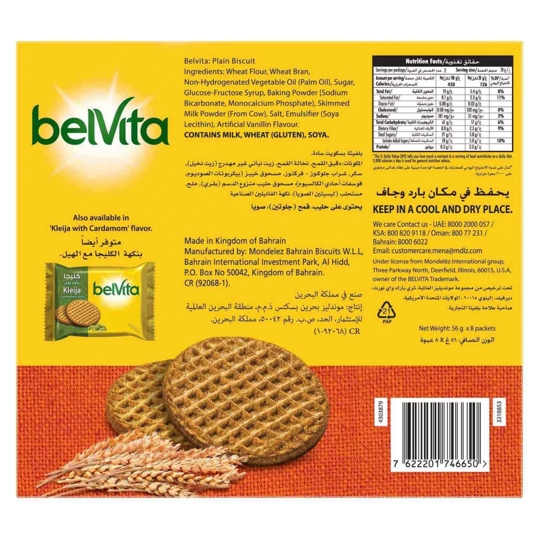 بيلفيتا كليجا بسكويت بنكهة الهيل 56 غرام حزمة من 8