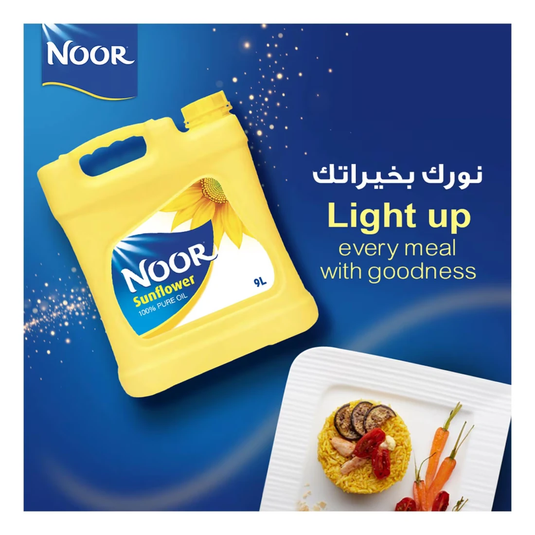 - زيت دوار الشمس النقي من نور هو زيت عالي الجودة متوفر في عبوة مريحة بسعة 9 لتر