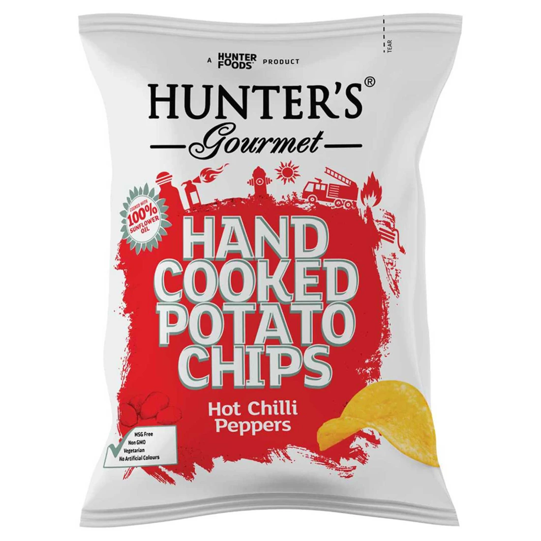 هانترز غورميه رقائق البطاطس المطبوخة يدويًا بنكهة الفلفل الحار، 125 غرام