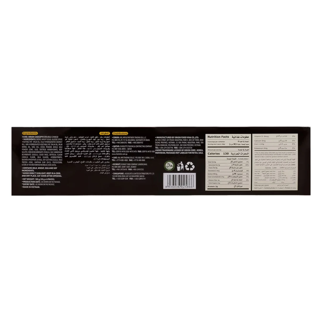 فطيرة أوريون دبل تشوكو هي حلوى شوكولاتة فاخرة، تُضفي نكهةً قويةً في كل لقمة. هذه الوجبة الخفيفة بحجمها الصغير مثاليةٌ للوجبات الخفيفة أثناء التنقل، بفضل قطعتيها المغلفتين بالشوكولاتة، والمحشوتين بكريمة الكاكاو الغنية. استمتع بهذه الحلوى الكريمية اللذيذة في أي وقتٍ لتُنعش طاقتك.
