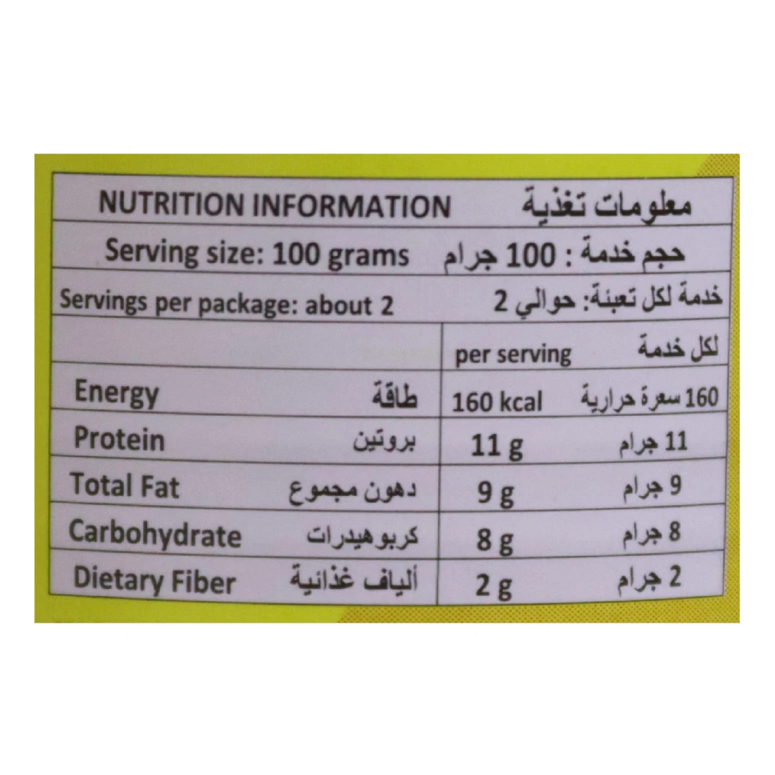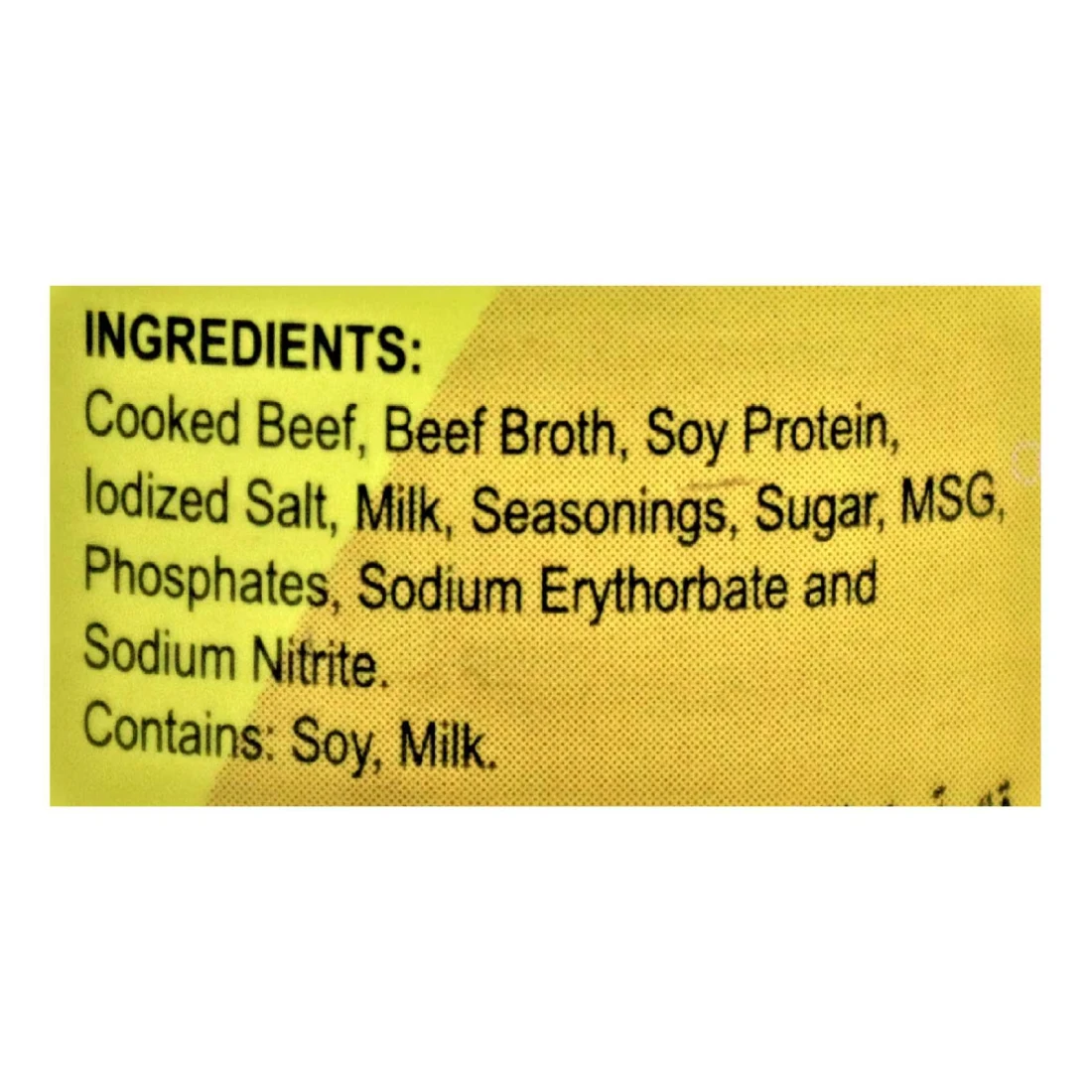 ingredients : لحم بقري ، ملح معالج باليود ، سكر ، بهارات ، ملح