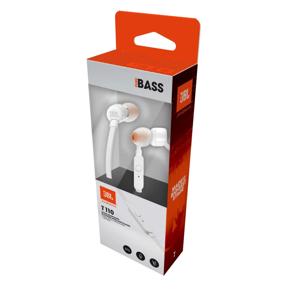 جي بي إل تيون 110 سماعات رأس سلكية داخل الأذن بصوت باس عميق، قوي، ونقي - أبيض