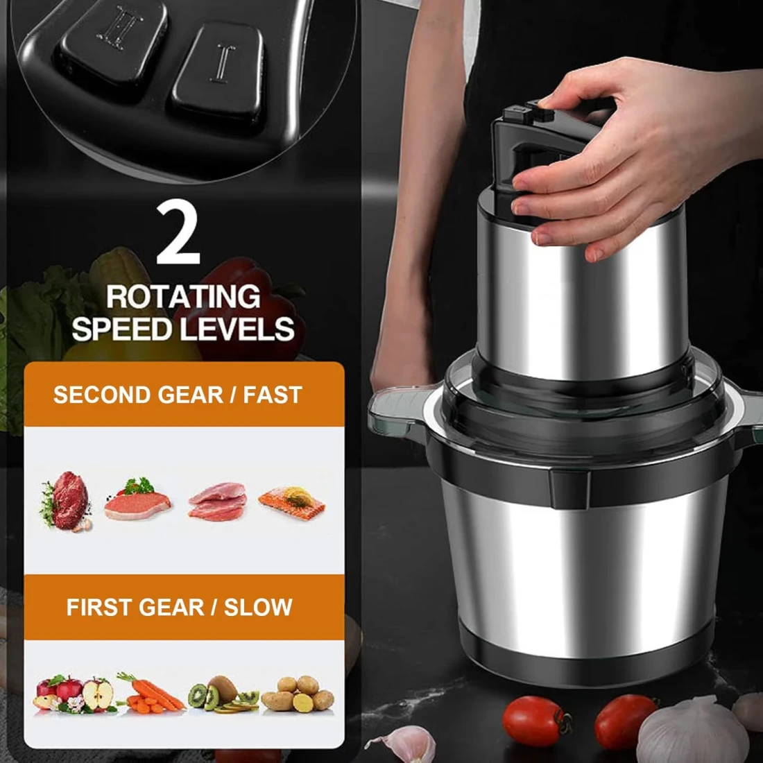 Material: High-grade stainless steel bowl and blades for durability.