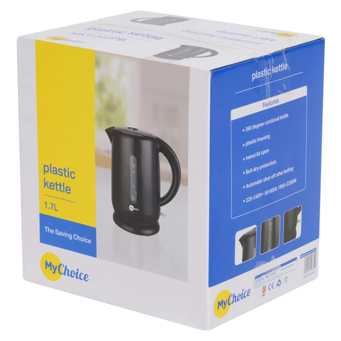 ماي تشويس غلاية كهربائية MKT-349PB، قدرة 1850 واط، سعة 1.7 لتر، أسود، بلاستيكية، لاسلكية