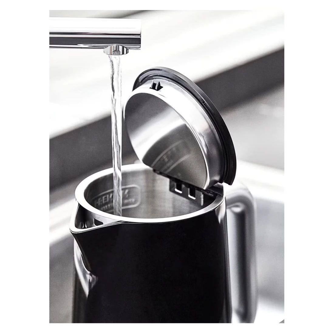 - Additional convenient features include an automatic lid opening for easy filling and an automatic shut-off for worry-free use