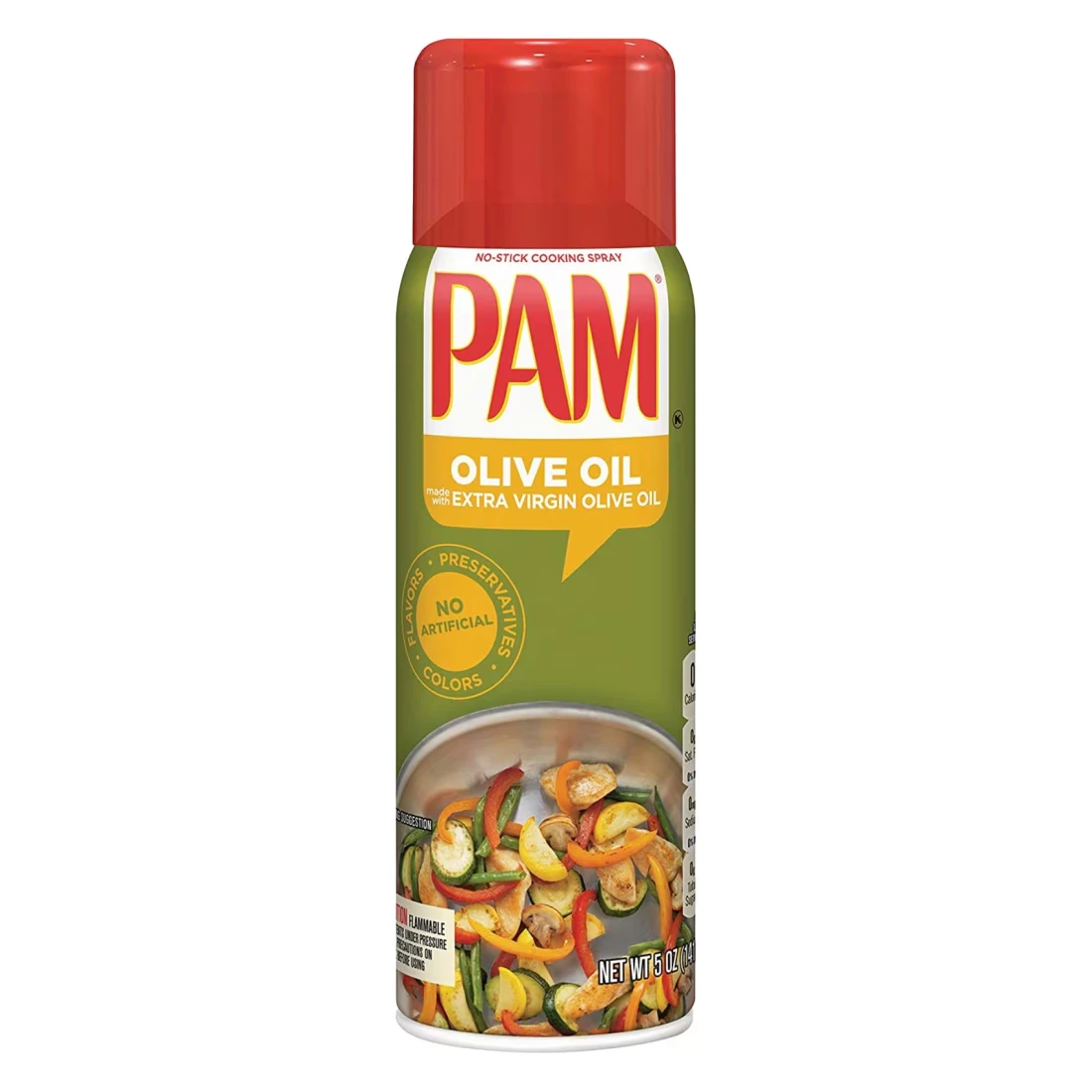 Cook your favourite ingredients easily without artificial preservatives, colours or flavours With PAM olive oil cooking spray. Prepare chicken, stir-fry and other quick dinners that are full of flavour and low in fat. Made with extra virgin olive oil (evoo), PAM cooking spray is perfect for use on your skillets, pans, and other cookware for extra easy clean up. After dinner, spend more time enjoying dessert and less time cleaning up.