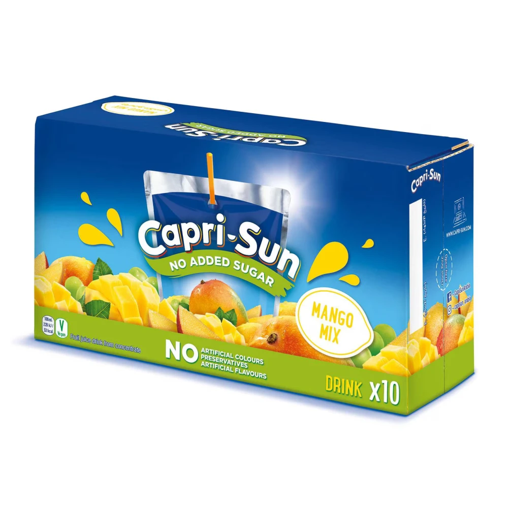● The Capri-Sun Mango juice blend is enriched with vitamin c and has a sweet tangy flavor which makes it a refreshing beverage to relish with your guests. ● The mango drink is free from artificial colorings, flavors and preservatives.
