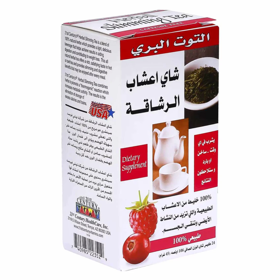 21st Century's Herbal Slimming Tea combines herbs to promote a thermogenic reaction which increases metabolic activity. The results is the elimination of storage of excess calories and toxins.