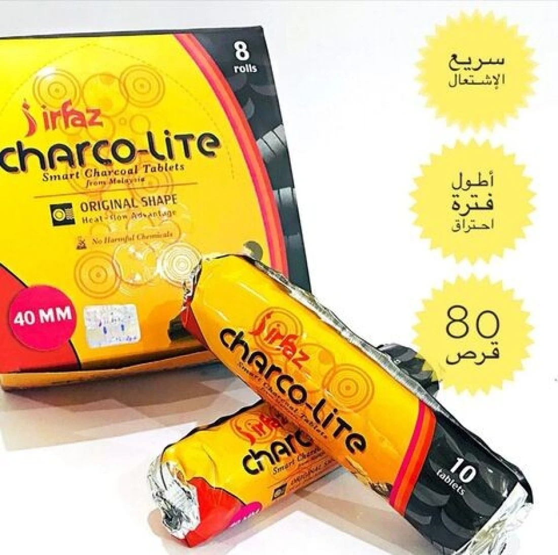 ARFAZ - Light Charcoal - Smart Incense Charcoal - Fast Flammable Charcoal 80 Pieces - 40 mm