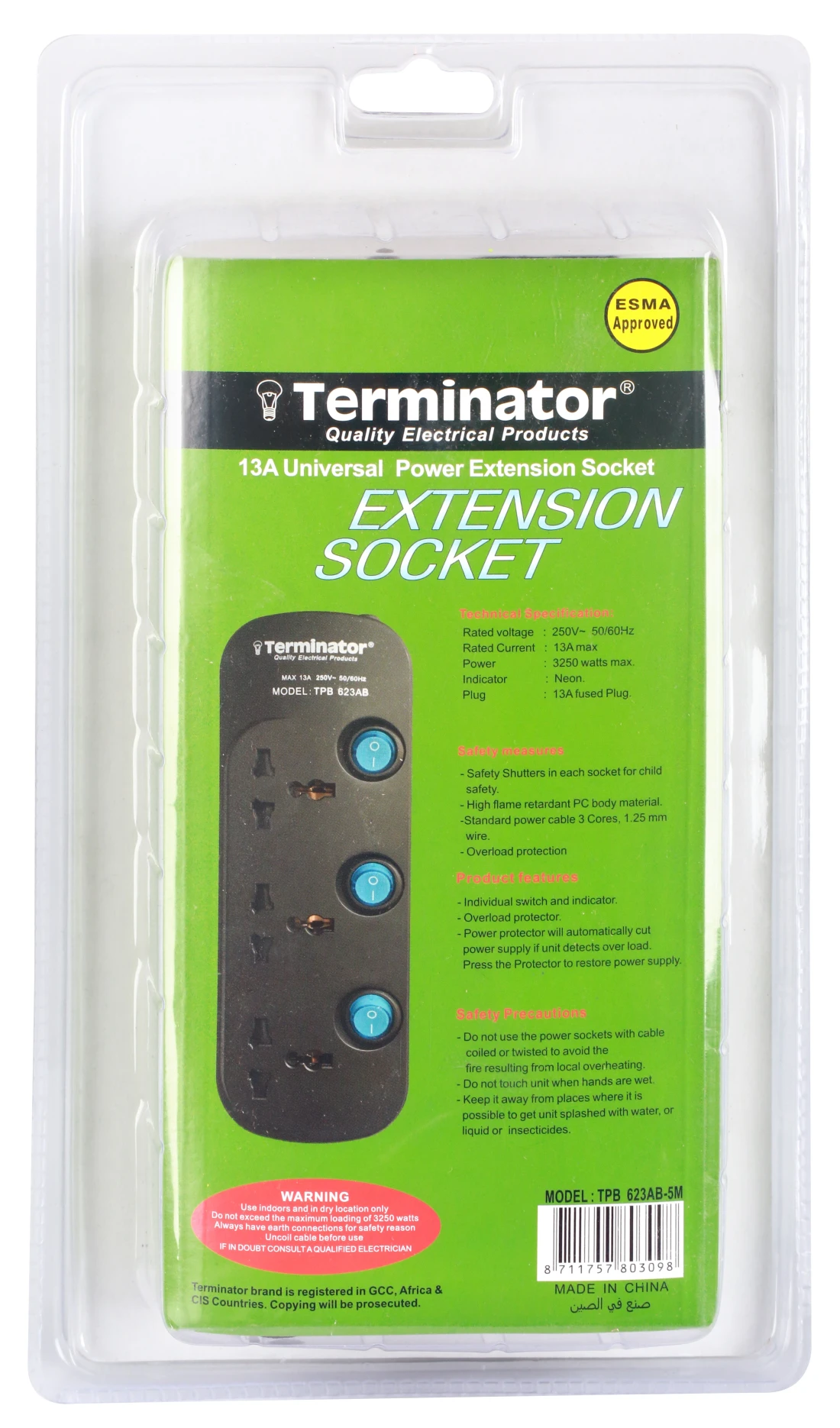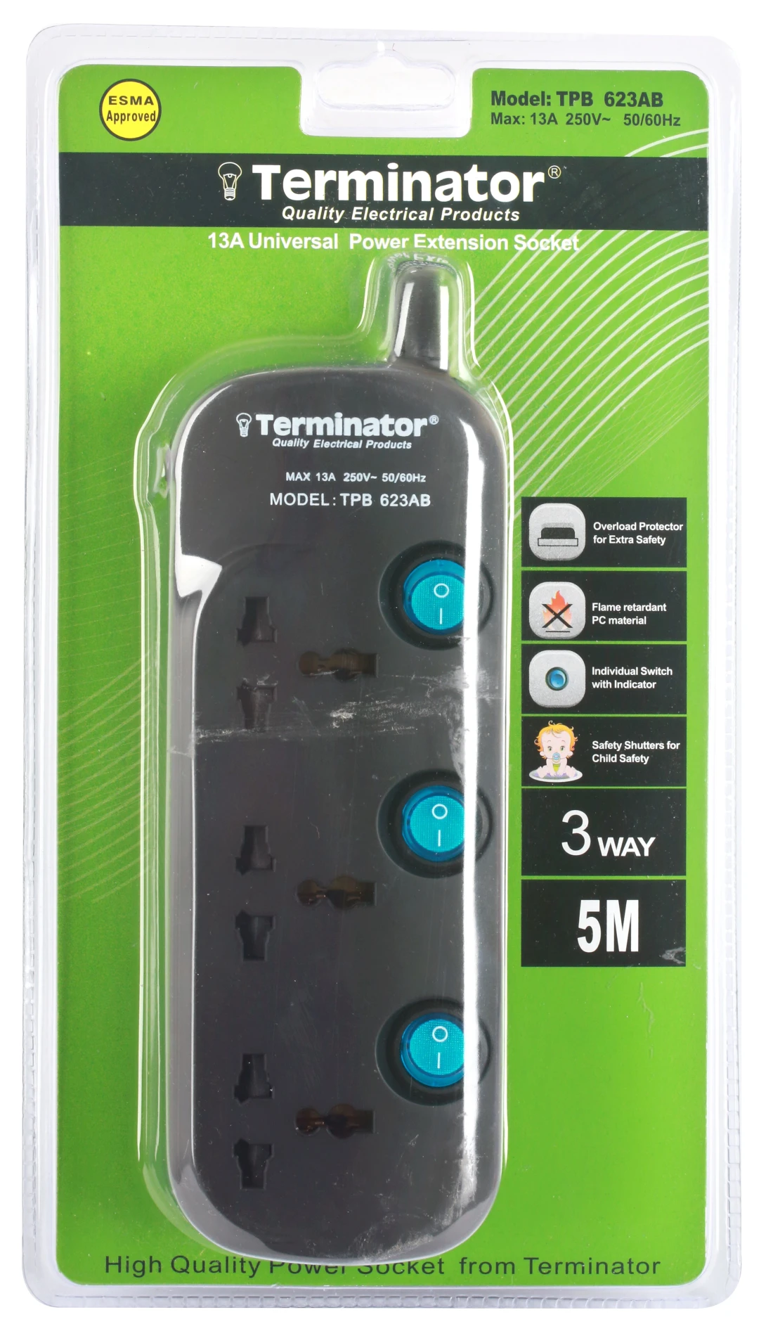Terminator Brand Universal Power Extension Socket - 3 way 5M
