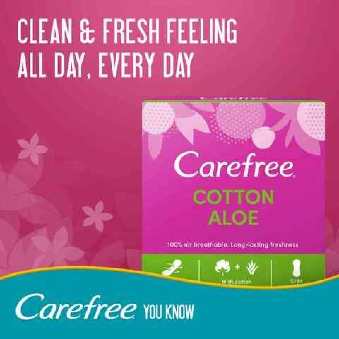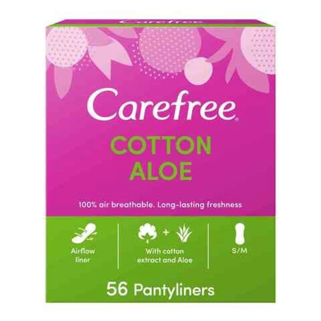 Carefree Daily Sanitary Pads Regular Size With Aloe , Pack Of 56