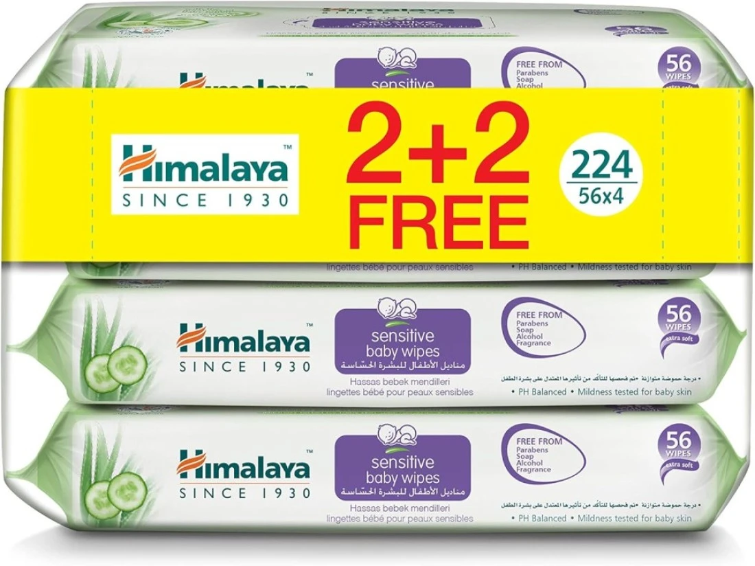 HIMALAYA SENSITIVE BABY WIPES 56S X (2+2