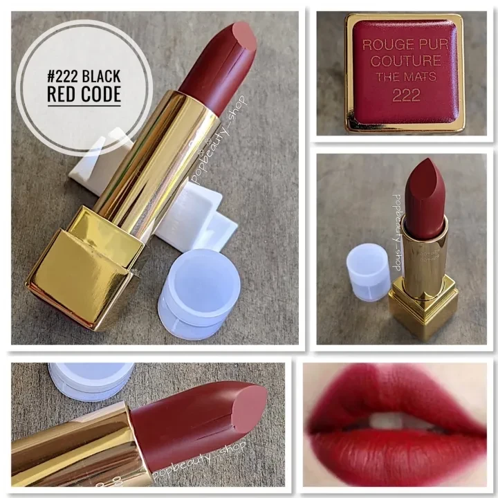 YSL Rouge Pur Couture The Mats Lipstick – 222 Black Red Code – Intense Matte Finish (4.5 g)