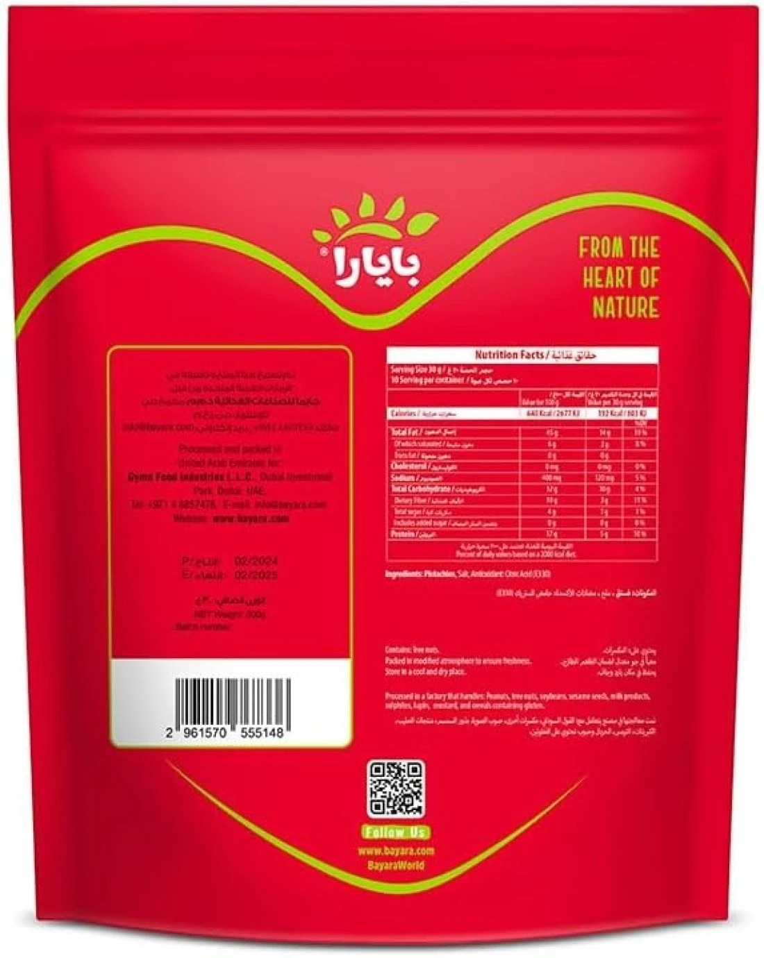 BAYARA SNACKS PISTACHIOS SALTED 300G