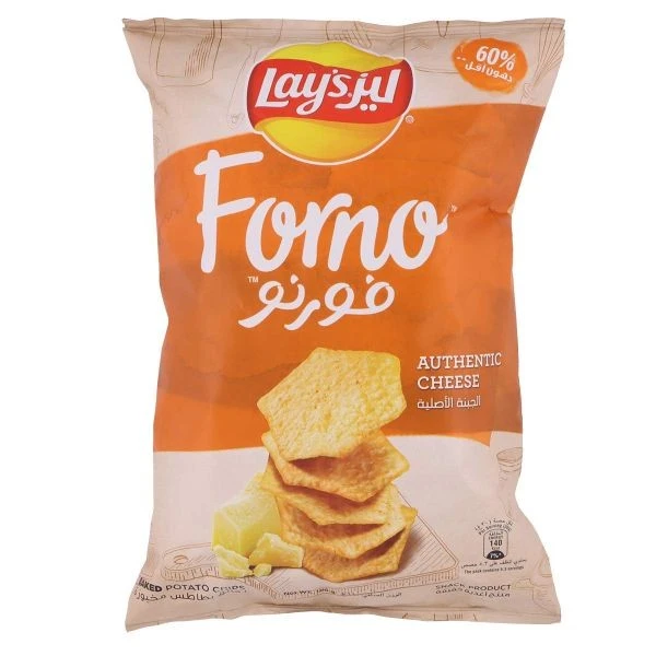 Enjoy the lighter side of indulgence with Lay’s Forno Authentic Cheese. These 160 g oven-baked potato chips deliver that delicious cheesy flavor with 60 % less fat and 20 % less sodium than regular fries. Crafted from dried potatoes, wheat flour, and authentic cheese seasoning, they offer guilt-free snacking for sharing, movie nights, or daily treats