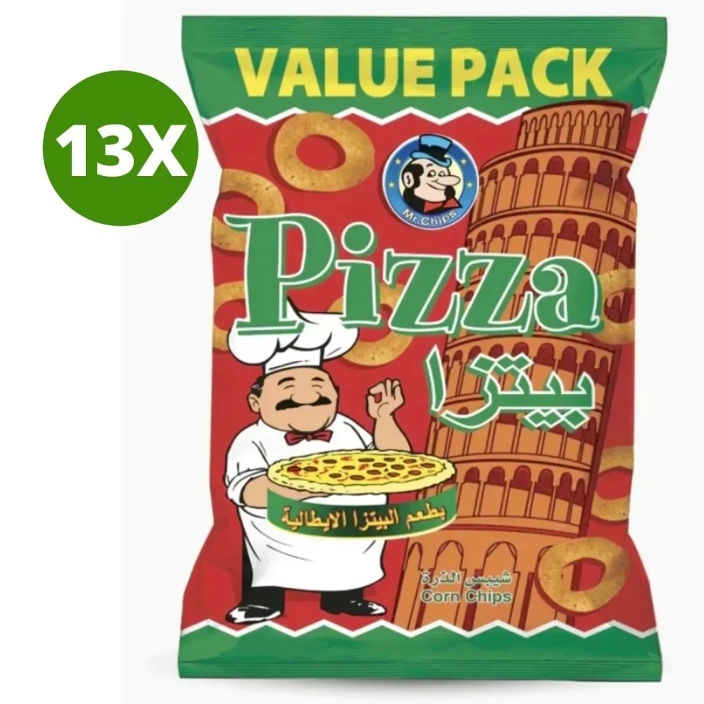 Crunch into cheesy, pizza-flavored enjoyment with Mr. Chips Pizza & Cheese Corn Puff Chips. This 90 g bag is filled with airy corn puffs coated in a savory blend of natural cheese and pizza seasoning. Oven-baked for a lighter texture, it’s perfect for snacking at home, sharing with friends, or packing in lunchboxes—offering bold flavor without the heaviness