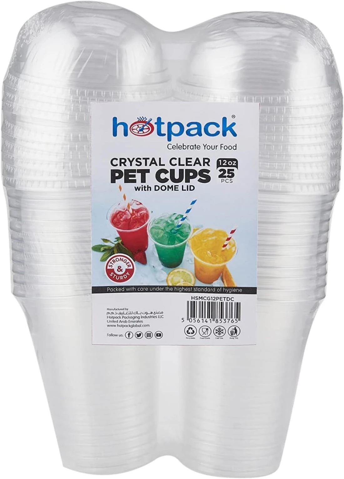 Hotpack crystal clear pet cups 12oz with dome lid 25pcs