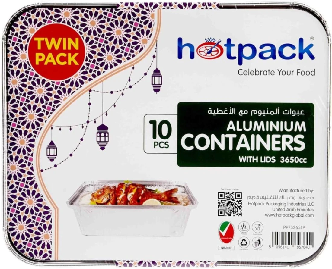 HOTPACK ALUMINIUM CONTAINERS WITH LIDS 3650cc TWIN PACK-10PCS