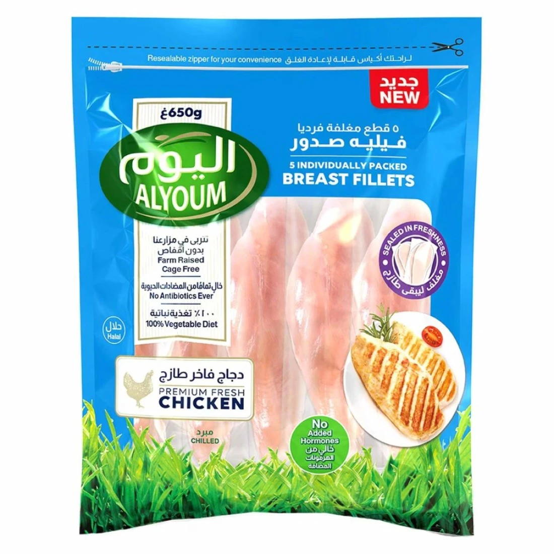 Alyoum Chicken Breast Fillets 650g are tender and juicy chicken breast fillets that are perfect for grilling, baking, or stir-frying. They are sourced from high-quality chicken and are free from hormones and antibiotics. These fillets are a versatile and healthy option for adding protein to your meals.