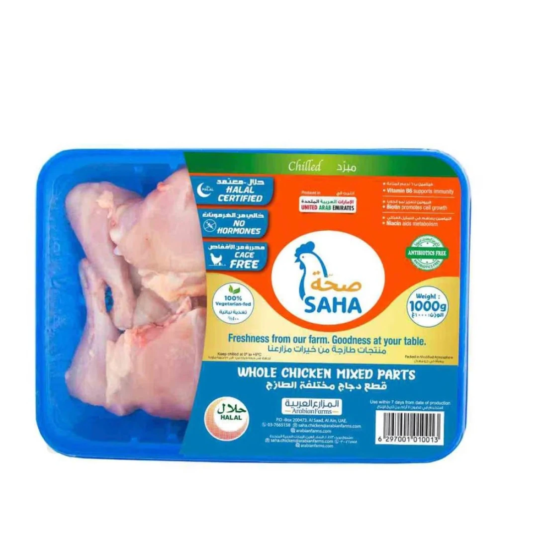 Saha Fresh Chicken Mixed Parts 1000g is a pack of fresh and tender chicken pieces, perfect for cooking a variety of delicious dishes. Whether you want to grill, roast, or fry them, these chicken parts are sure to satisfy your taste buds. Each pack contains a mixture of different parts, including drumsticks, wings, thighs, and breasts, providing a diverse range of flavours and textures. With its high-quality and carefully selected chicken, Saha Fresh guarantees a tasty and nutritious meal for you and your family.