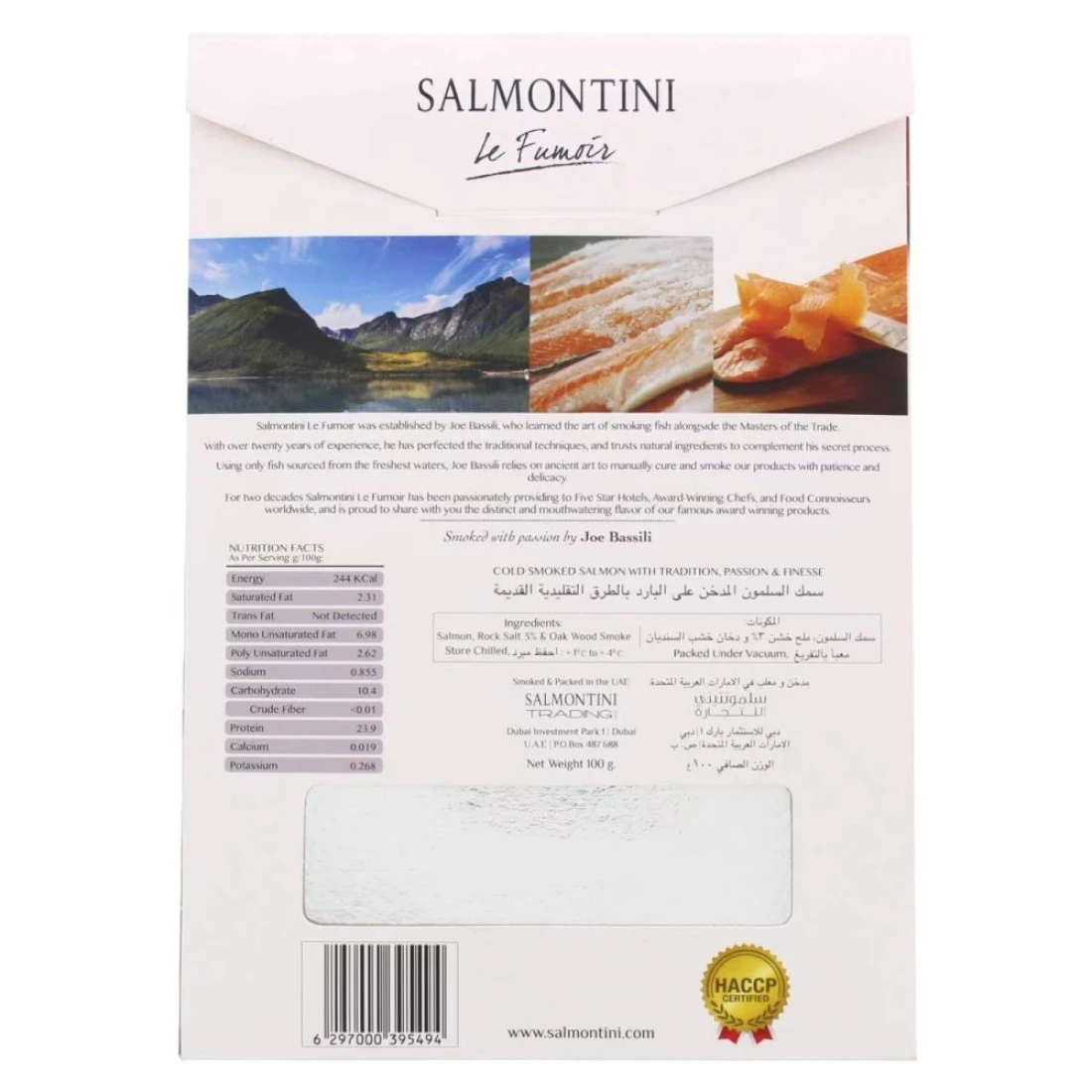 - Salmontini Premium Scottish Smoke Salmon is sustainably sourced Salmon slowly cold smoked giving a gently rounded flavour and a great source of protein.