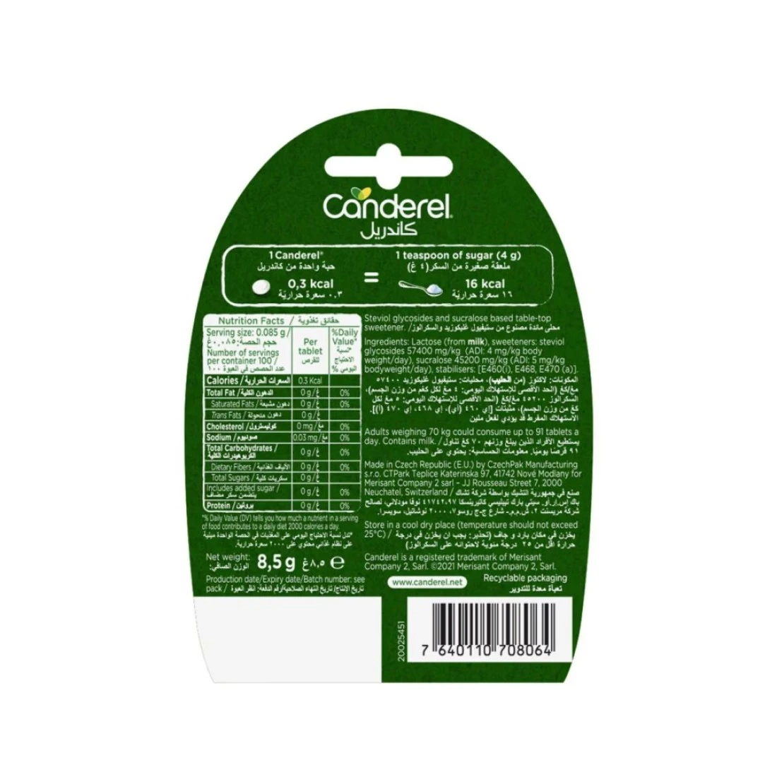 Canderel Sweetener with Stevia 100 Tabs 8.5g