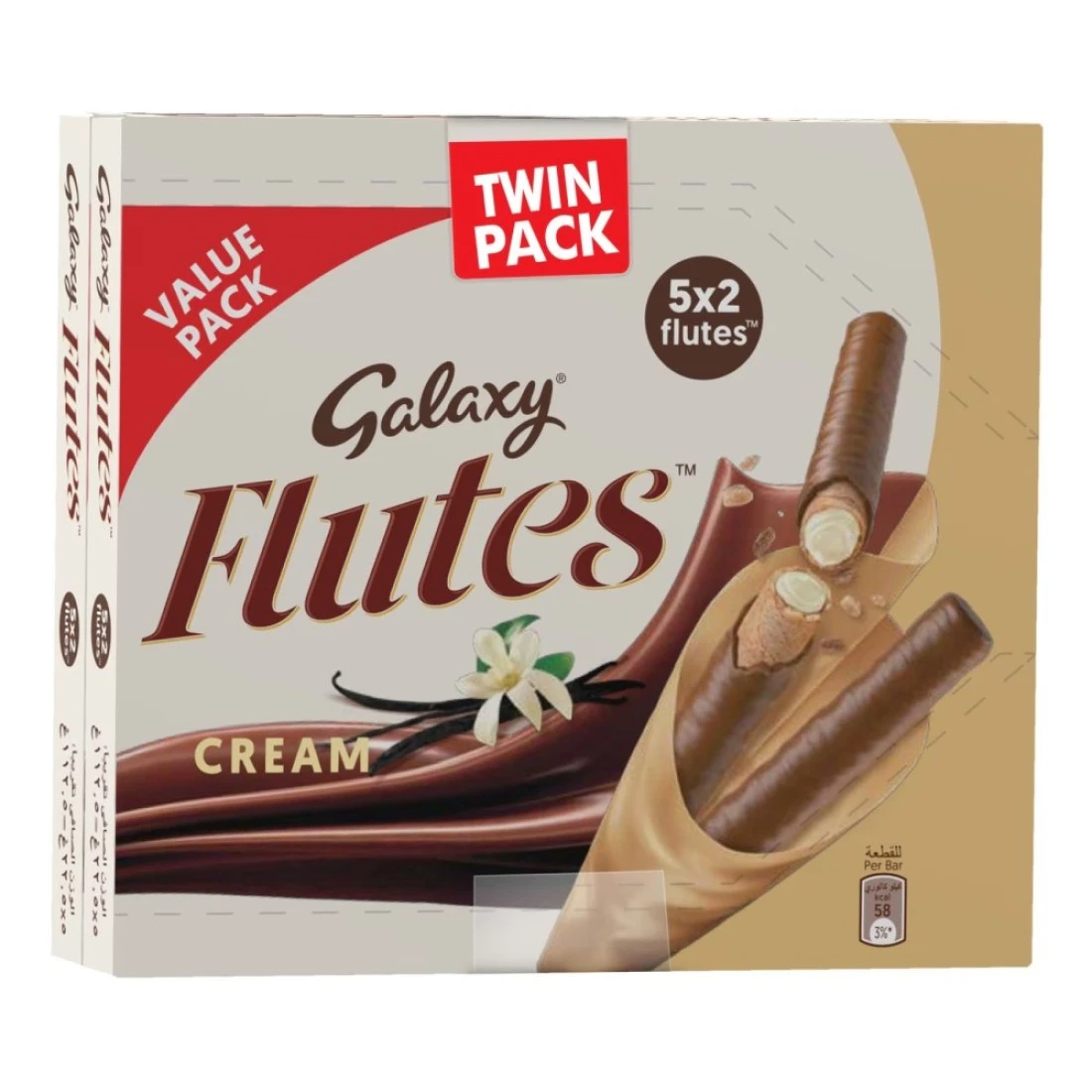Galaxy Flutes Cream Crispy Wafer Rolls with a Chocolate Cream Filling Covered in Milk Chocolate 5 Wafers, 22.5g Pack of 2