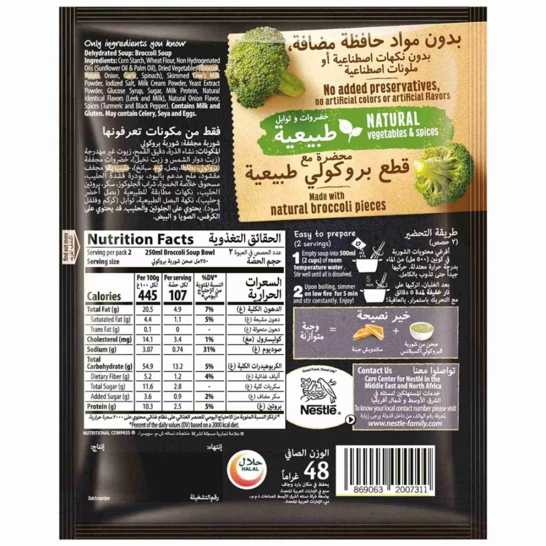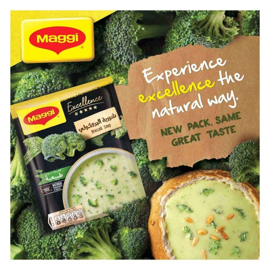 Nestle Maggi Excellence Broccoli Soup is a convenient and delicious option for a quick meal or snack. This 48g pack features a rich and creamy broccoli flavour, made with quality ingredients to deliver a comforting taste in just minutes. Simply add hot water, stir, and enjoy a warm bowl of soup that is perfect for any time of the day. Ideal for those seeking a nutritious and satisfying option, this soup offers a delightful blend of flavours while being easy to prepare, making it a great choice for busy lifestyles.