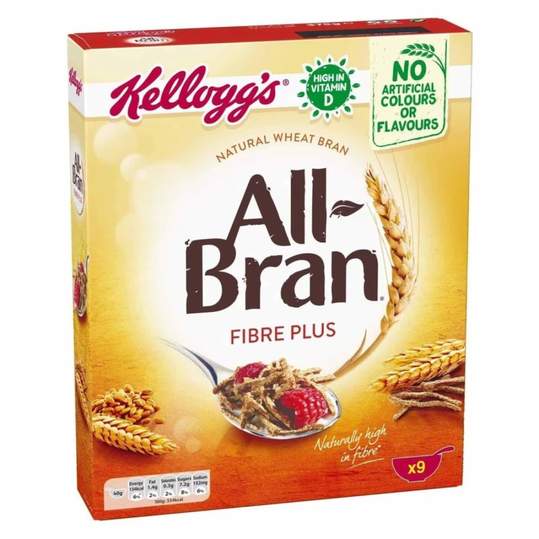 Kellogg's All Bran Fibre Plus Cereal is a high-fibre cereal that is made with whole grains and is fortified with vitamins and minerals. It is a delicious and nutritious way to start your day and provides a good source of fibre to support a healthy digestive system. The cereal is also low in fat and sugar, making it a great choice for those looking to maintain a balanced diet. With its crunchy texture and great taste, Kellogg's All Bran Fibre Plus Cereal is a popular choice for breakfast or as a snack.