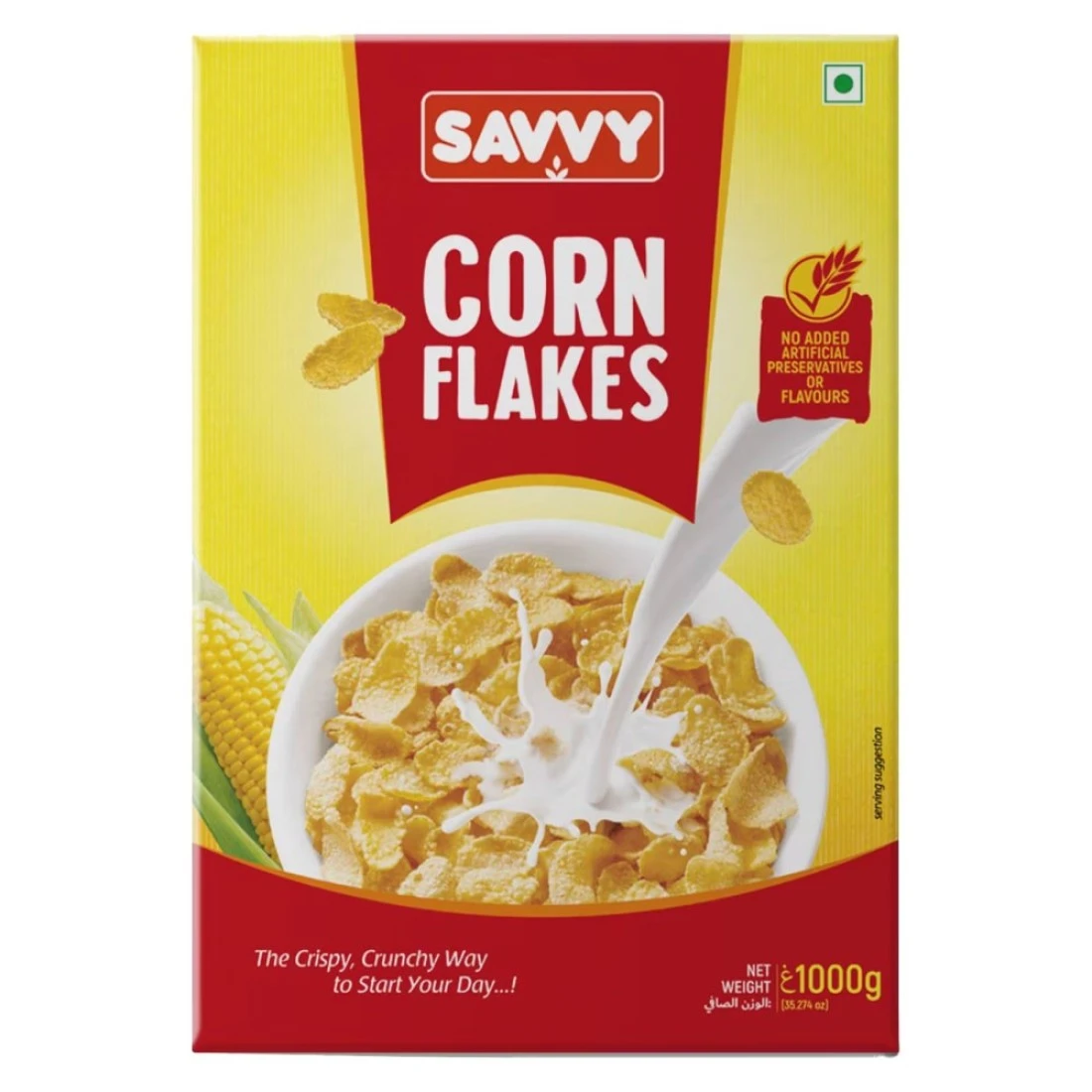 Savvy Corn Flakes is a delicious and nutritious breakfast cereal. Made from premium quality corn it provides a crisp texture and a satisfying crunch. Each serving is packed with essential vitamins and minerals to fuel your day. Start your morning off right with a bowl of LP Savvy Corn Flakes! Savvy Corn Flakes 1000g is the perfect breakfast option for a quick and nutritious start to your day. Made from high-quality corn, these flakes are packed with essential vitamins and minerals. Whether you enjoy them with milk or as a topping for yogurt, these corn flakes are a delicious and healthy choice. With its generous 1000g pack, Savvy Corn Flakes ensures that you never run out of your favourite breakfast cereal. The crispy texture and delightful taste make it a hit with both kids and adults. Start your morning on a positive note with a bowl of Savvy Corn Flakes. Not only are Savvy Corn Flakes 1000g a great breakfast option, but they also make for a convenient snack. Whether you're on the go or need a quick pick-me-up during the day, these corn flakes are a satisfying choice. With their long-lasting freshness and wholesome ingredients, Savvy Corn Flakes are a smart choice for any time of the day.