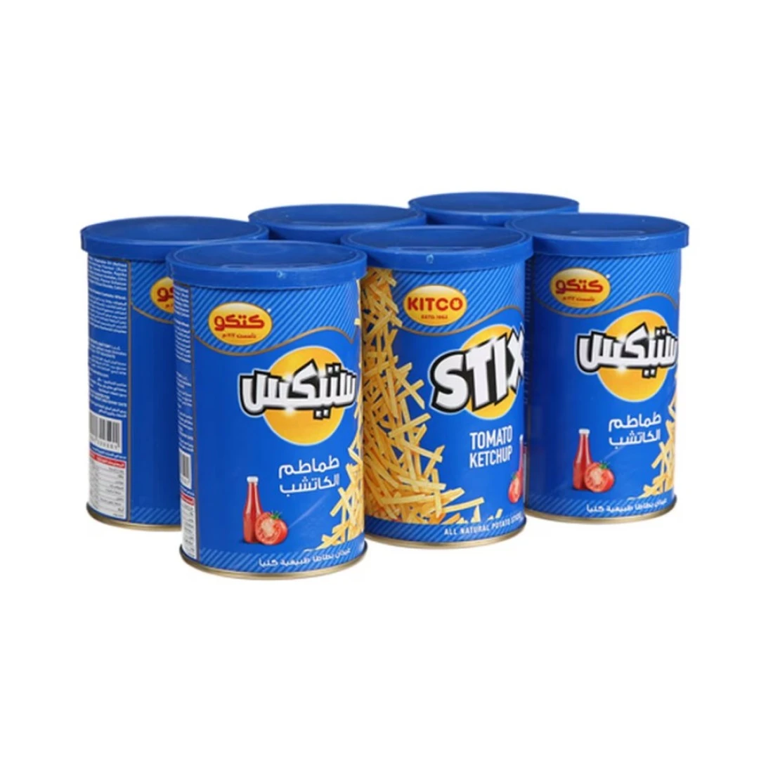 Kitco Stix Tomato Ketchup Chips are a delicious and tangy snack that everyone will love. These ketchup-flavoured chips have the perfect balance of tomato flavour and a hint of sweetness making them an irresistible treat. Each pack contains 45g of chips making it perfect for enjoying on-the-go or for sharing with friends and family. With this pack of 6, you'll have plenty of chips to satisfy your cravings. So grab a bag and experience the mouthwatering taste of Kitco Stix Tomato Ketchup Chips.