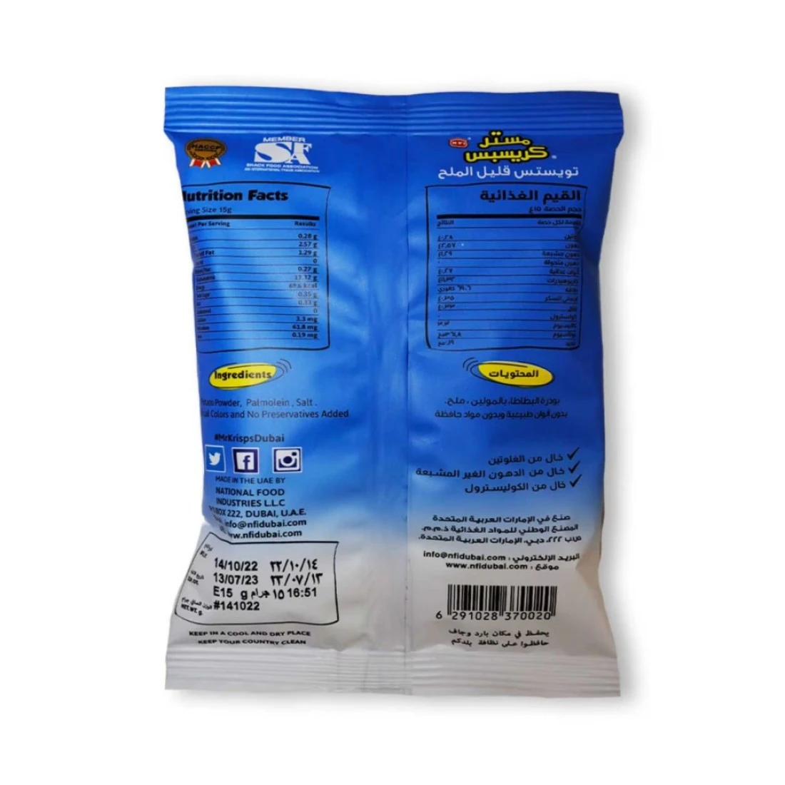 NFI Mr. Krisps Twists Lightly Salted Puffs are a delicious and crunchy snack option. These puffs are made from carefully selected potatoes and are lightly salted for a savoury flavour. Each puff is shaped like a twist making them fun to eat. Perfect for snacking on the go or enjoying while relaxing at home these puffs are sure to satisfy your cravings. The 80g package is convenient and easy to carry making it the ideal snack for any occasion.