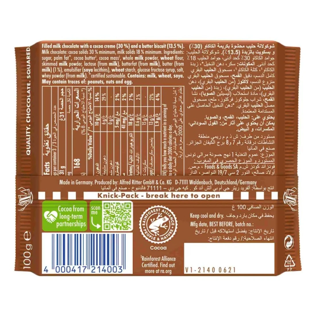 Ritter Sport Butter Biscuit Chocolate, 100g