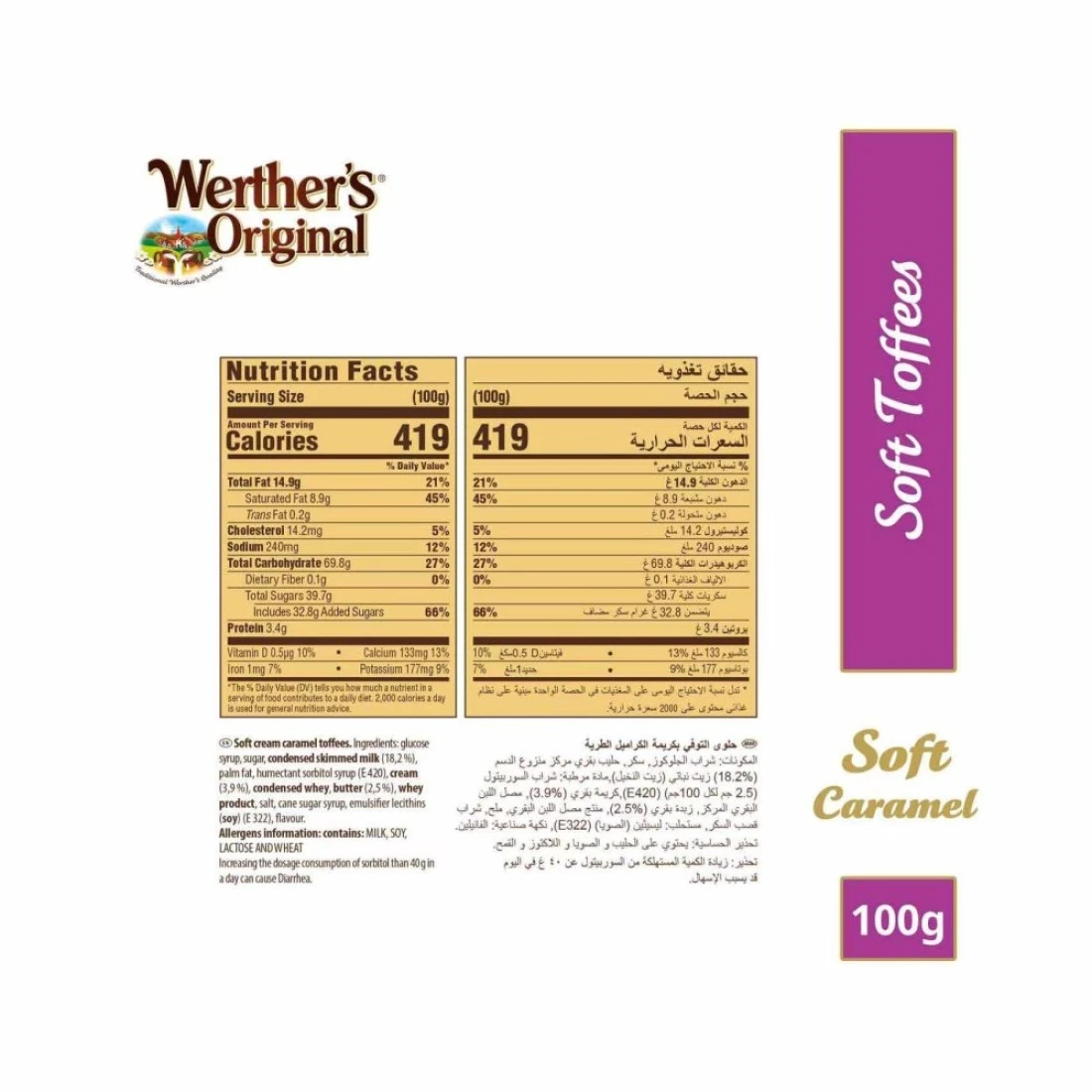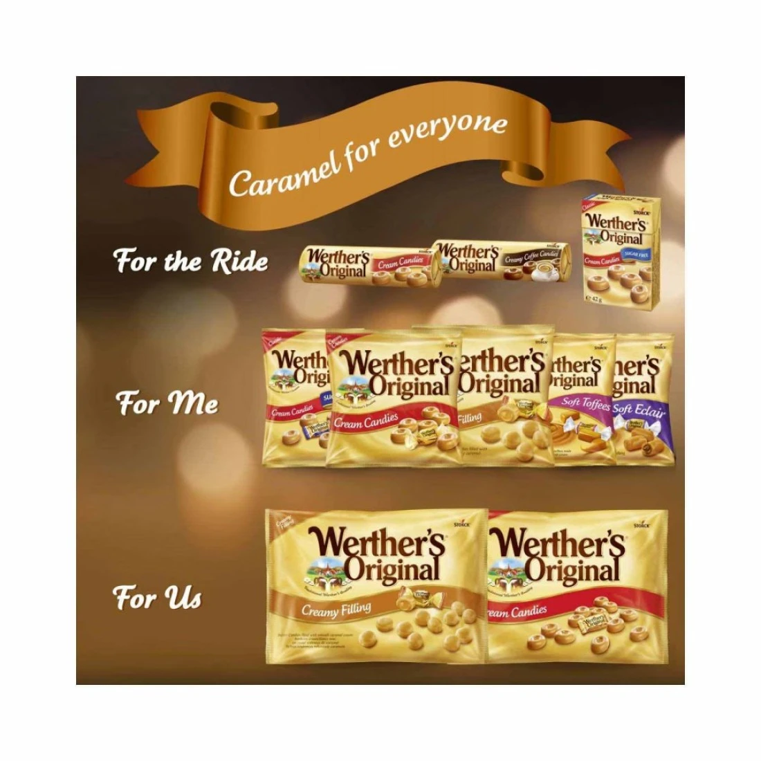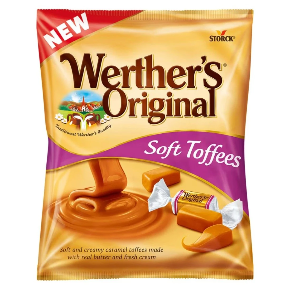 Werther's Original Soft Cream Caramel Toffees are a delicious and indulgent treat. Made from the finest quality ingredients these toffees have a creamy and smooth texture that melts in your mouth. The classic caramel flavour is enhanced by the addition of butter and cream creating a rich and luscious taste. Each toffee is individually wrapped making it convenient to enjoy anytime anywhere. Whether you're craving a sweet snack or looking for a gift Werther's Original Soft Cream Caramel Toffees are sure to satisfy your cravings and bring a smile to your face.