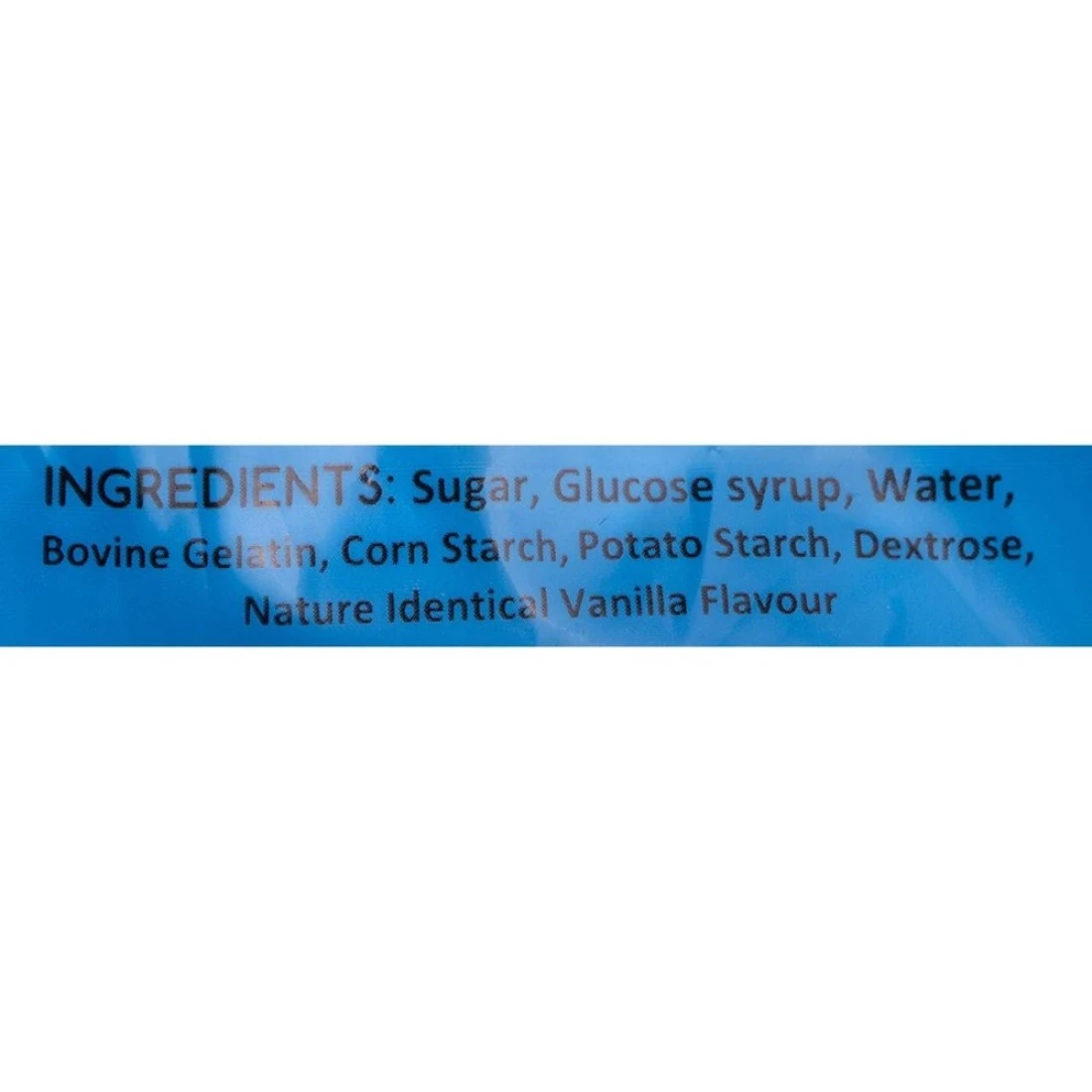 ingredients : Sugar, Glucose Syrup, Water, Bovine Gelatine, Corn Starch, Potato Starch, Dextrose
